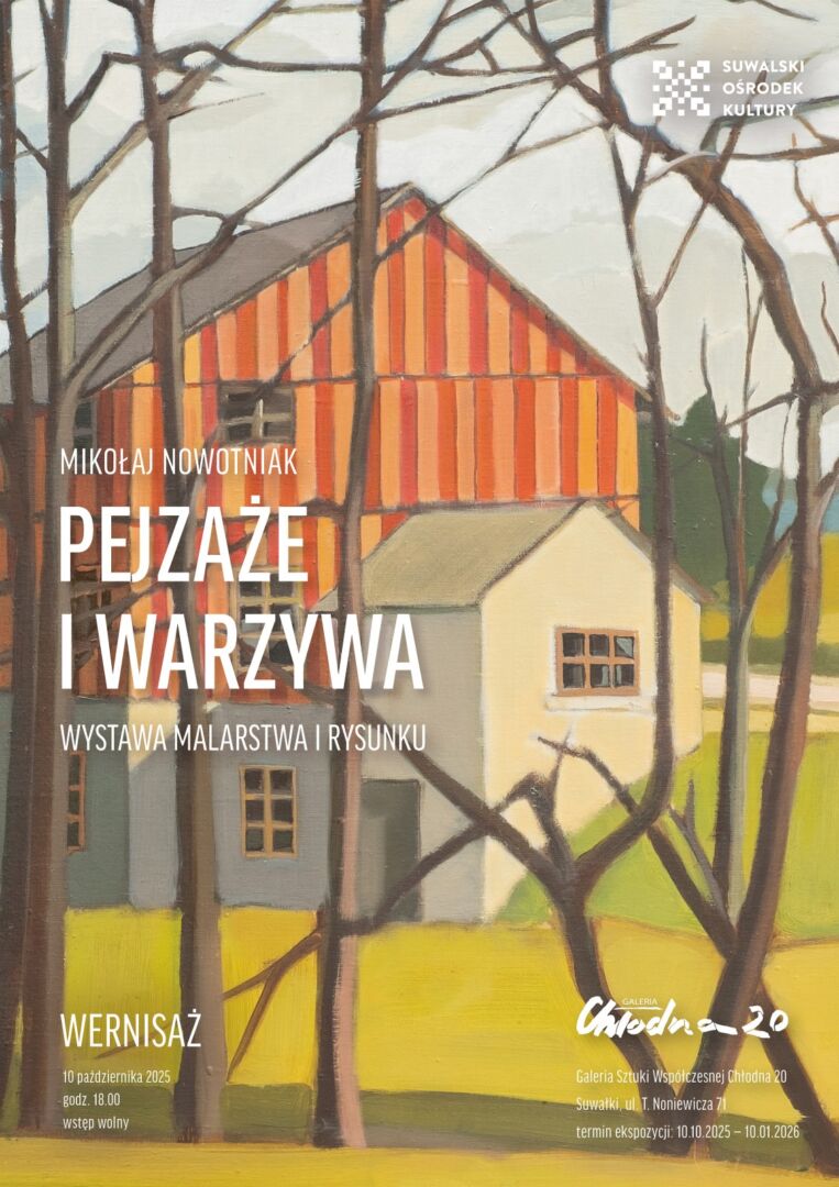 Suwalski Ośrodek Kultury zaprasza na wystawę malarstwa Mikołaja Nowotniaka – artysty i architekta wnętrz, którego pejzaże, akwarele i martwe natury opowiadają o wrażliwości na światło, przestrzeń i piękno codzienności.