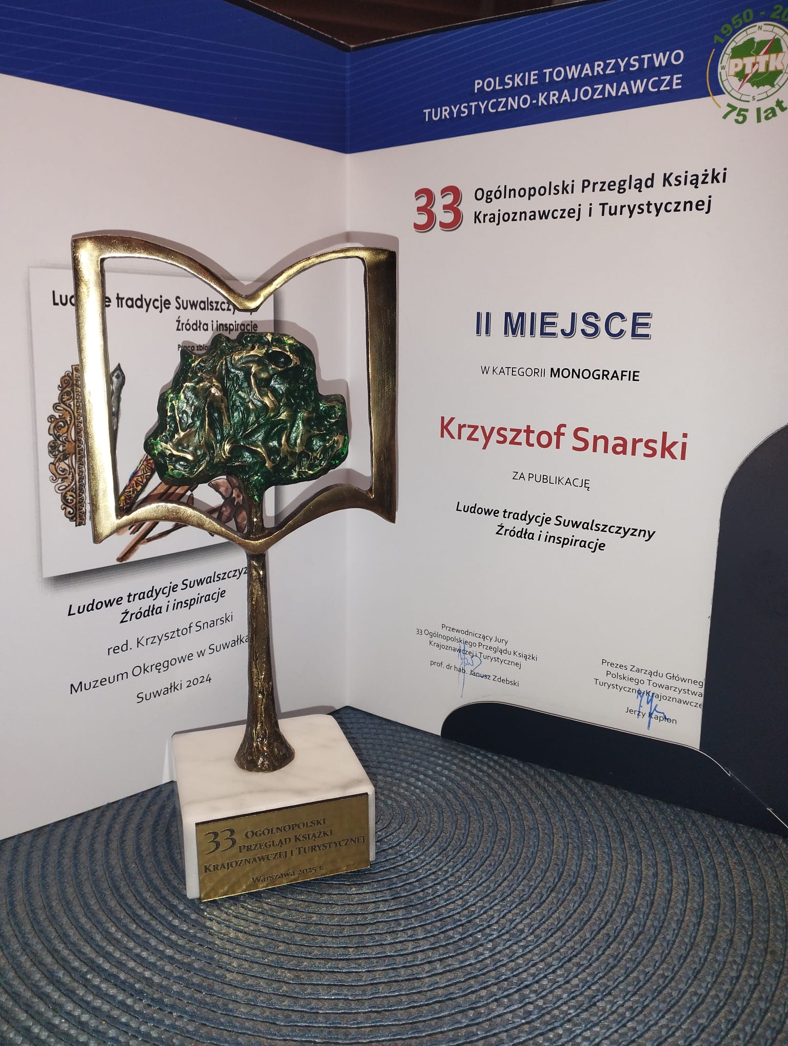 28 listopada 2025 roku w Muzeum Sportu i Turystyki w Warszawie odbyła się gala finałowa jubileuszowego, 33 Ogólnopolskiego Przeglądu Książki Krajoznawczej i Turystycznej PTTK. W jej trakcie, uczestniczący w niej zastępca dyrektora Muzeum Okręgowego w Suwałkach Wiesław Kapla i kustosz dyplomowany dr Krzysztof Snarski odebrali nagrodę za wydaną przez Muzeum Okręgowe w Suwałkach pod redakcja dr Krzysztofa Snarskiego publikację „Ludowe tradycje Suwalszczyzny. Źródła i inspiracje”. Była to druga nagroda w kategorii Monografie.