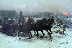 Najnowszy nabytek charakteryzuje się doskonałym oddaniem anatomii koni w ruchu, perfekcyjnym przedstawieniem śniegu oraz gry światła. Widać tu nastrojowy zachód słońca, tworzący melancholijną atmosferę, a także narracyjność i filmowość sceny — można wręcz „usłyszeć” parskanie koni i dźwięk dzwoneczków. Jak przekazała Eliza Ptaszyńska, kustosz Muzeum Okręgowego w Suwałkach, obraz najprawdopodobniej został sprzedany bezpośrednio z pracowni Alfreda Wierusza-Kowalskiego prywatnemu nabywcy.