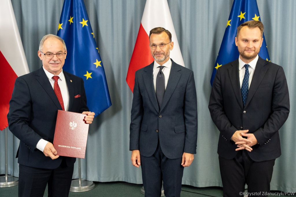 Czesław Renkiewicz, prezydent Suwałk wziął udział w piątkowym (10.10) spotkaniu z wojewodą podlaskim Jackiem Brzozowskim, podczas którego podpisano umowy na dotacje i środki, które zostaną przeznaczone na ochronę ludności i obronę cywilną.