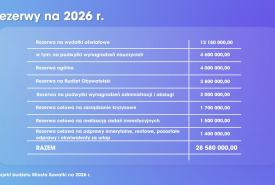 W projekcie zabezpieczono również środki na wzrost wynagrodzeń pracowników samorządowych. W rezerwie oświatowej przeznaczono 4 600 000 zł na podwyżki dla nauczycieli, a kolejne 3 000 000 zł zarezerwowano na wzrost wynagrodzeń pracowników administracji i obsługi.