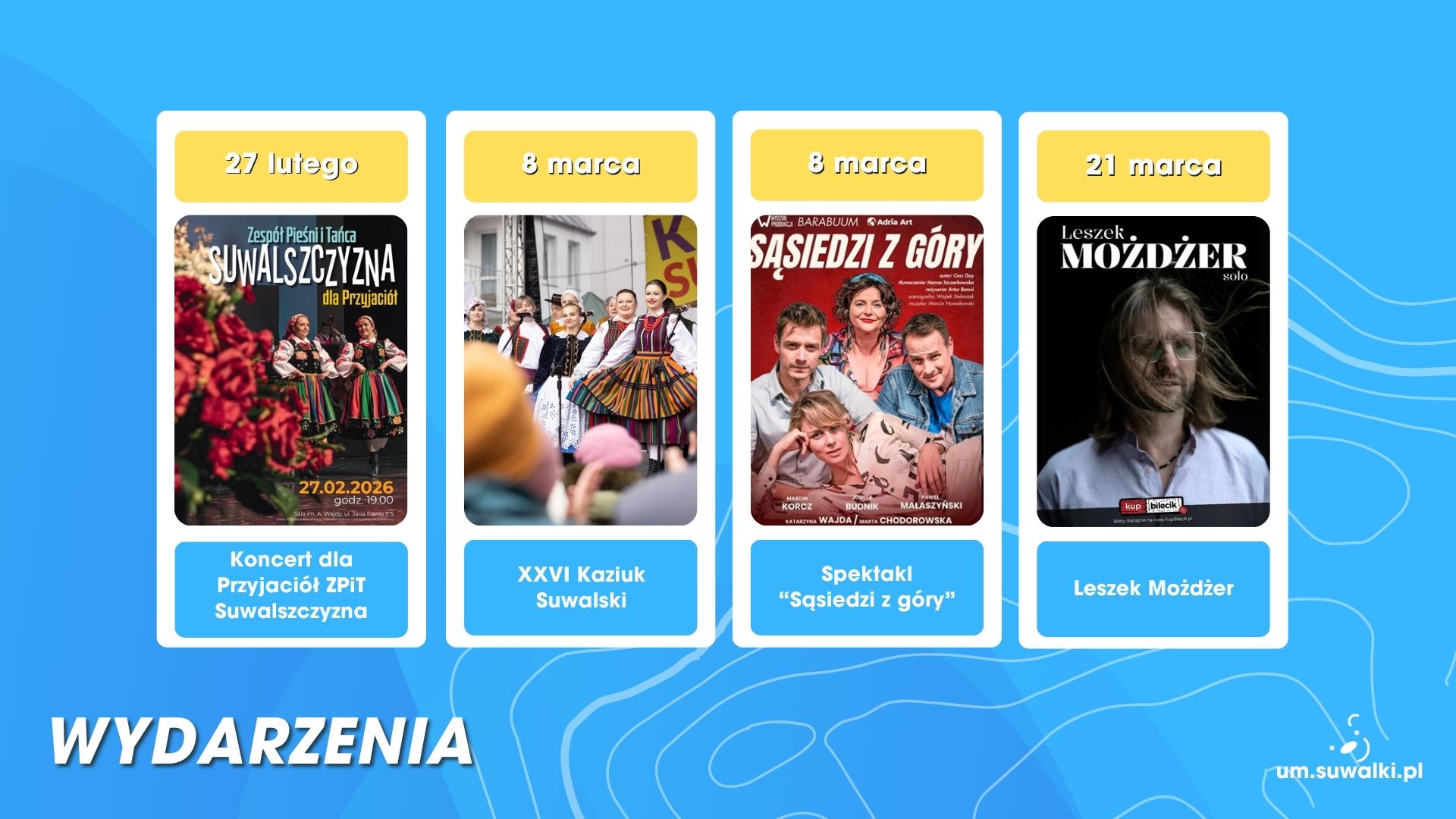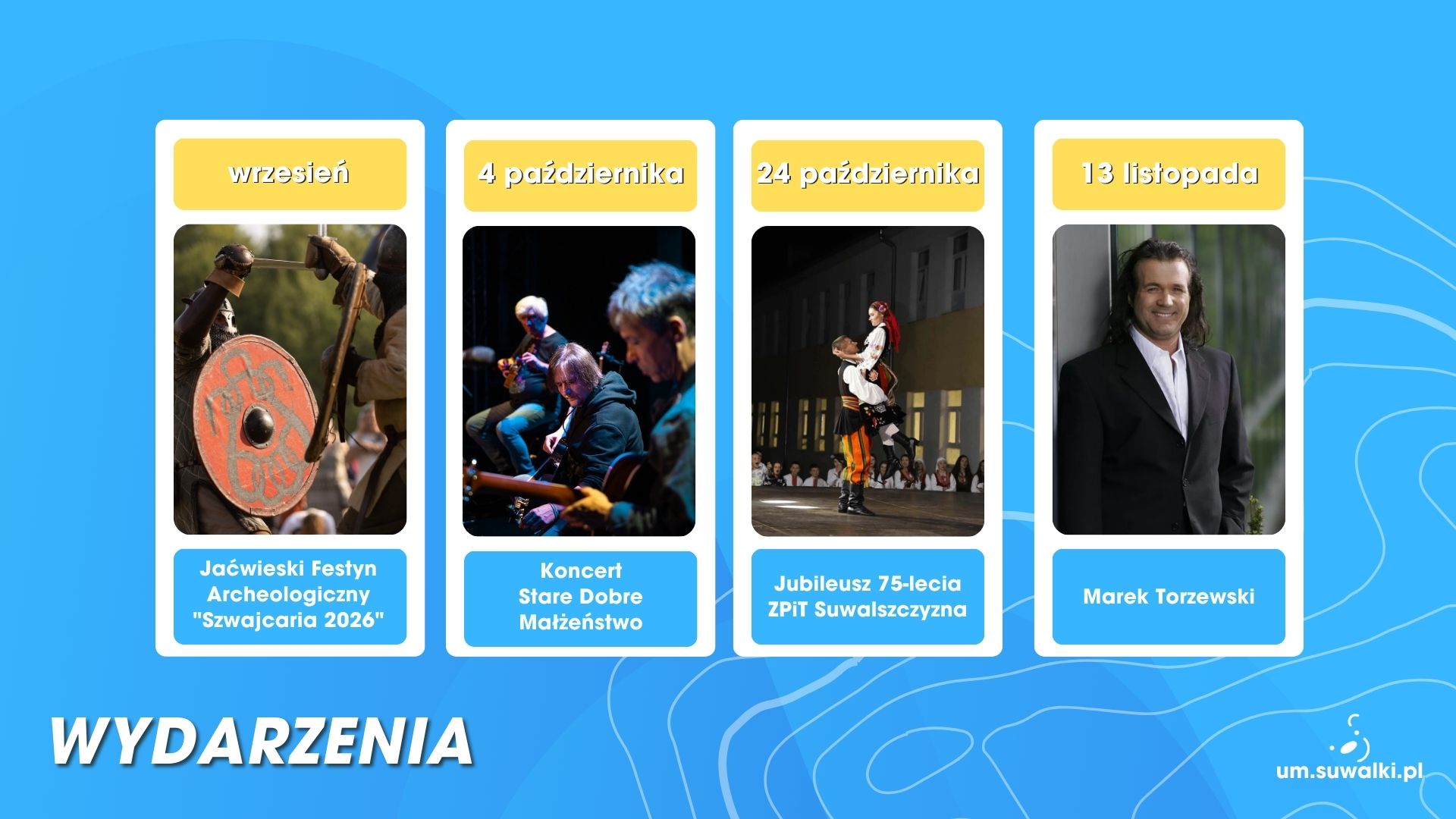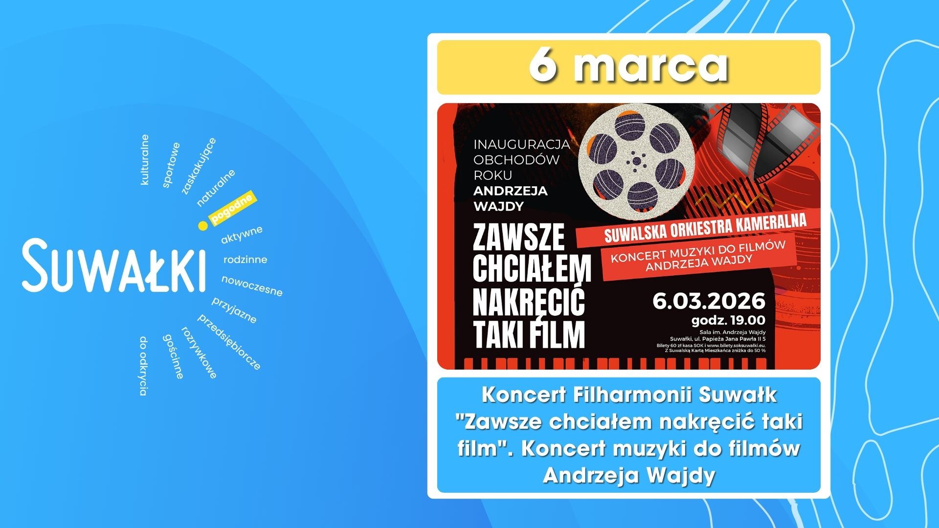 - Festiwal Filmowy „Wajda na Nowo” – edycja szczególna, wpisująca się w obchody przypadającego na 2026 rok Roku Andrzeja Wajdy. Będzie to czas celebracji kina najwyższej próby i hołd dla wybitnego suwalczanina.
