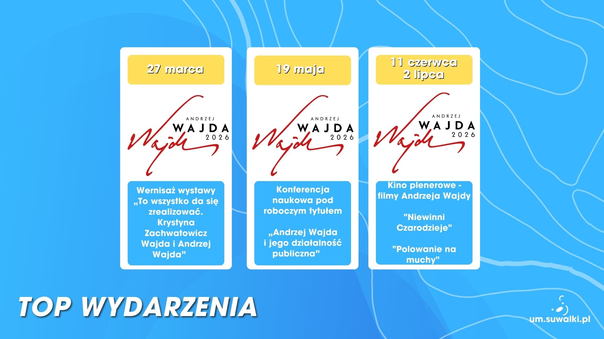 Rok 2026 został w Polsce, oraz w Suwałkach wybrany Rokiem Andrzeja Wajdy. W związku z tym przygotowano szereg wydarzeń związanych z urodzonym w naszym mieście reżyserem.