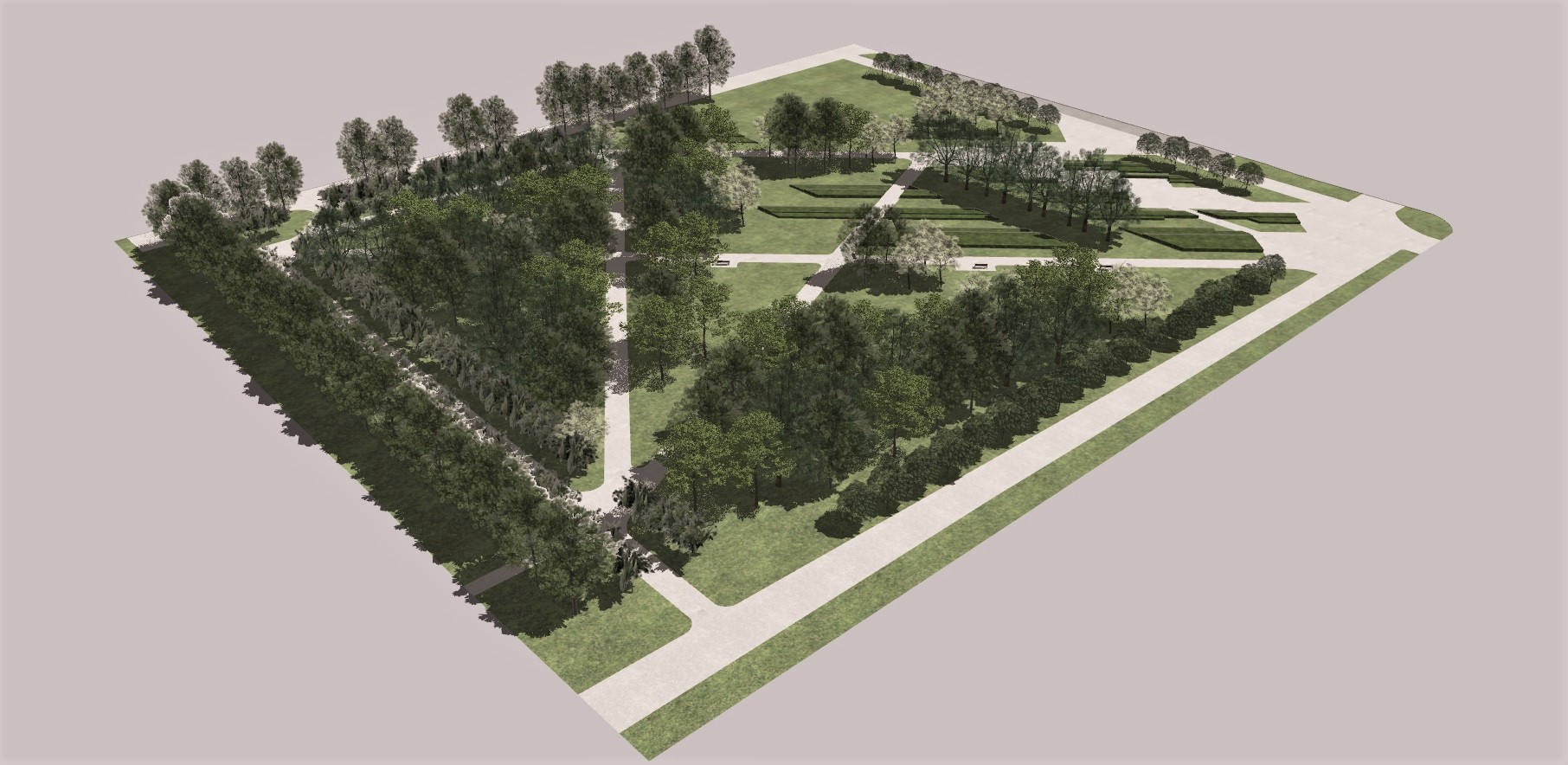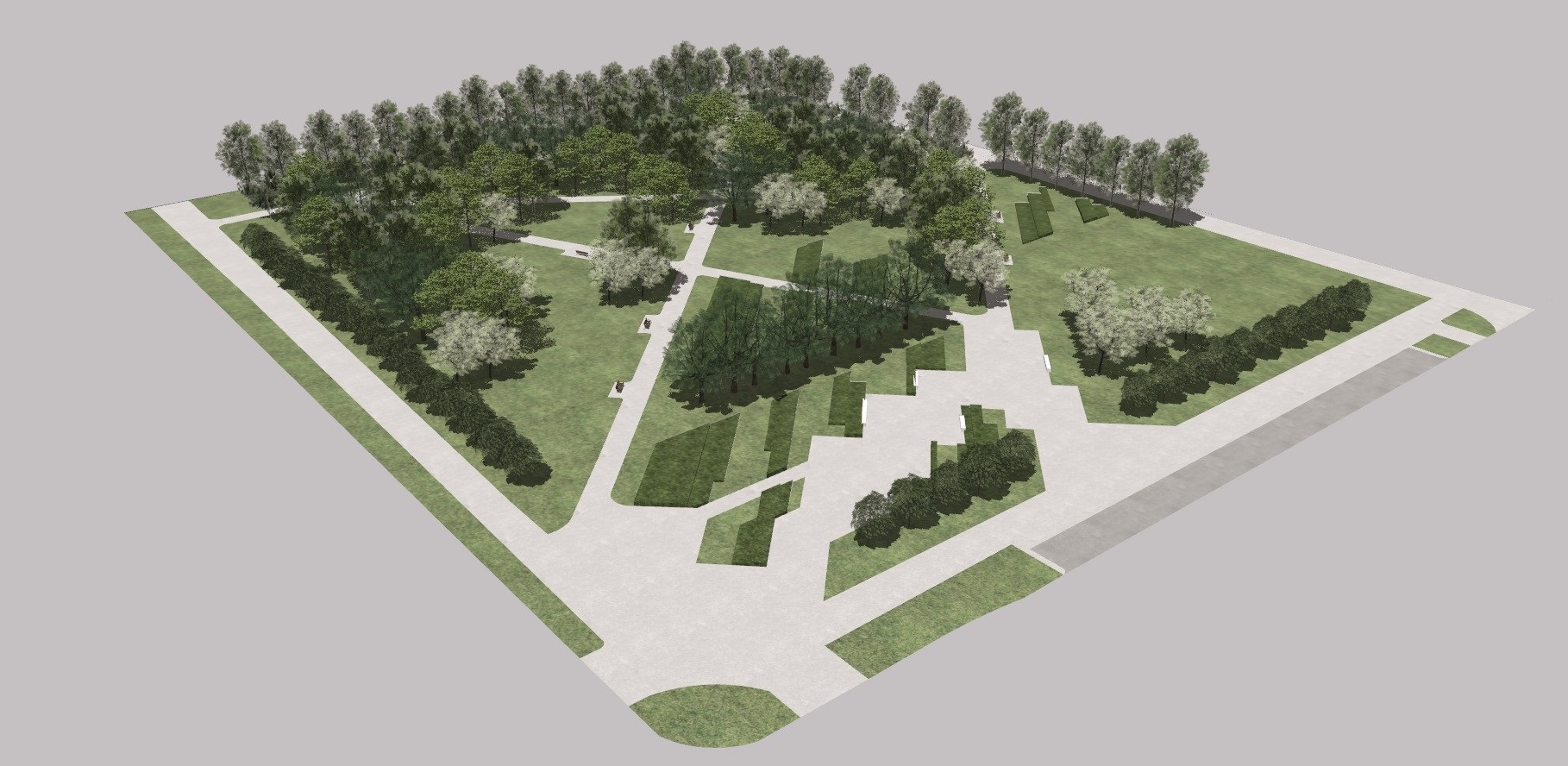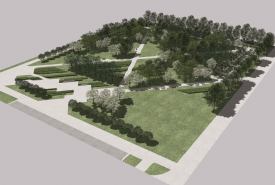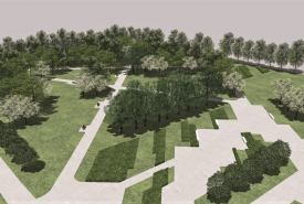 Park będzie nowoczesną przestrzenią rekreacyjną, z alejami, utwardzonymi miejscami z ławkami i stojakami rowerowymi, dużymi nasadzeniami oraz placem na wystawy plenerowe.