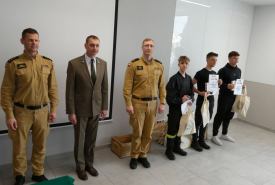 Zwycięzcom turnieju pogratulowali: Komendant Miejski PSP w Suwałkach mł. bryg. Jerzy Netter oraz Zastępca Nadleśniczego Nadleśnictwa Suwałki Pan Hubert Maślak, którzy wręczyli nagrody i dyplomy wszystkim uczestnikom.