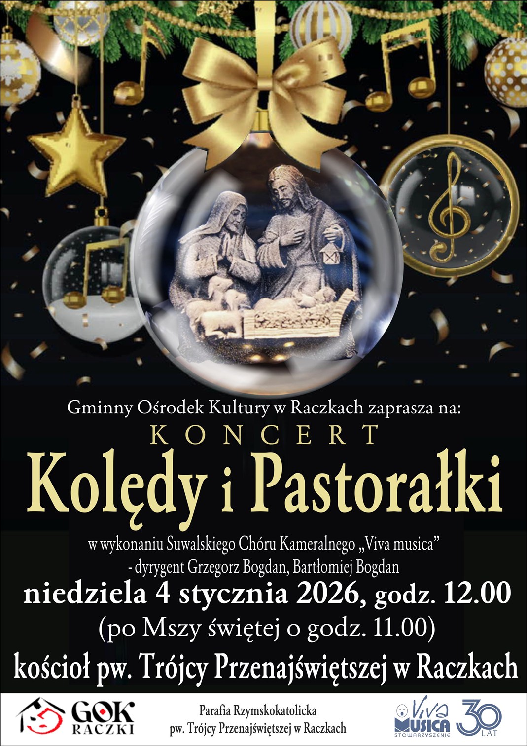 Stowarzyszenie Miłośników Muzyki "Viva Musica" zaprasza na noworoczny tryptyk kolędowy z Suwalskim Chórem Kameralnym "Viva Musica". Wstęp wolny.