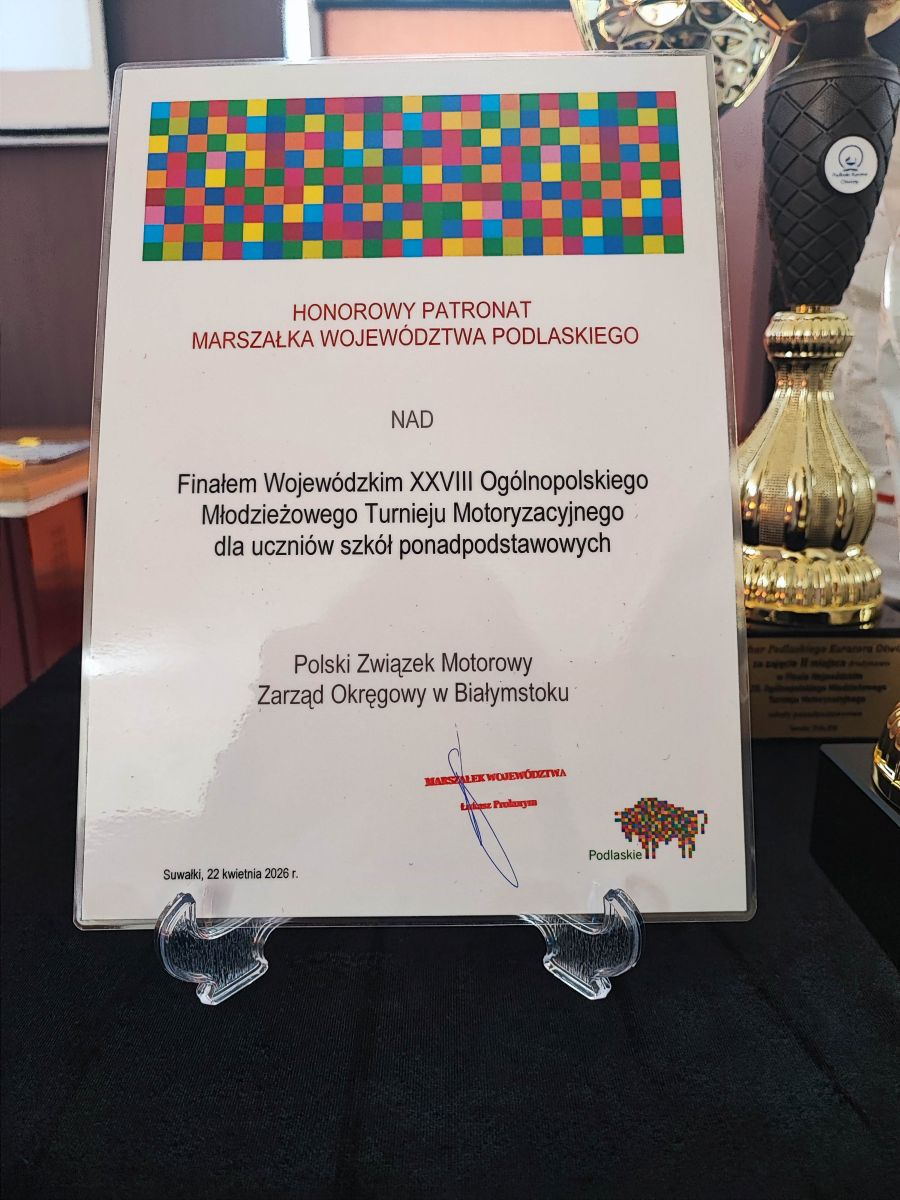 Zarząd Okręgowy Polskiego Związku Motorowego w Białymstoku wraz z Komendą Wojewódzką Policji w Białymstoku, Państwową Uczelnią Zawodową w Suwałkach i Wojewódzkim Ośrodkiem Ruchu Drogowego w Suwałkach zorganizowali dziś na terenie suwalskiego WORD-u 28. Finał Wojewódzkiego Ogólnopolskiego Młodzieżowego Turnieju Motoryzacyjnego dla uczniów szkół ponadpodstawowych.