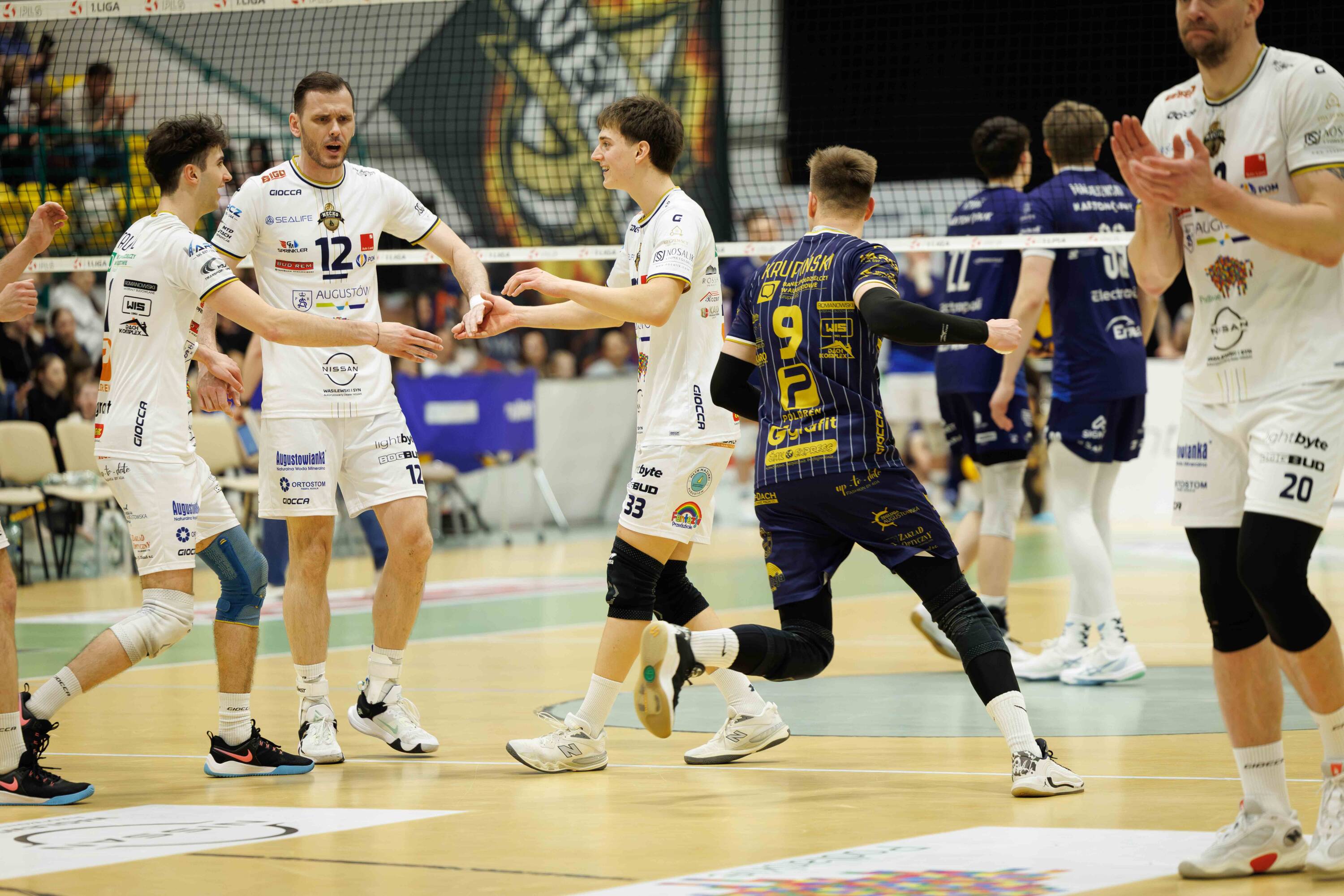 Po bardzo zaciętej walce KS Necko Augustów pokonał na własnym terenie Karton-Pak Astra Nowa Sól 3:2 (31:29, 25:22, 19:25, 22:25, 16:14) w sobotnim meczu 28. kolejki PLS 1. Ligi. Gospodarze dobrze weszli w mecz, wygrywając dwa pierwsze sety. Jednak rywal dał radę wyrównać stan spotkania i potrzebne było rozegranie tie-breaka. Tam Augustowianie walczyli dosłownie o każdą piłkę i wyszarpali dwa punkty, rewanżując się za porażkę z pierwszej części sezonu. Tym samym Necko zachowało jeszcze minimalne szanse na utrzymanie. Nagroda MVP trafiła do rąk Filipa Jarosińskiego z Augustowa. (Fot. Łukasz Tyczkowski/KS Necko Augustów)