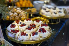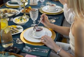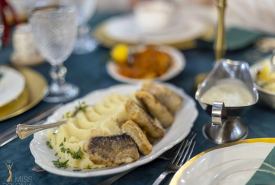 Dwór Dobarz już od progu zachwycił gości niezwykłym, świątecznym klimatem. Blask świateł, starannie przygotowane dekoracje i ciepło wnętrz stworzyły atmosferę bliskości i radości. Na stołach zagościły tradycyjne potrawy wigilijne, przygotowane z lokalnych składników, a całość dopełniły wyborne, świąteczne desery.