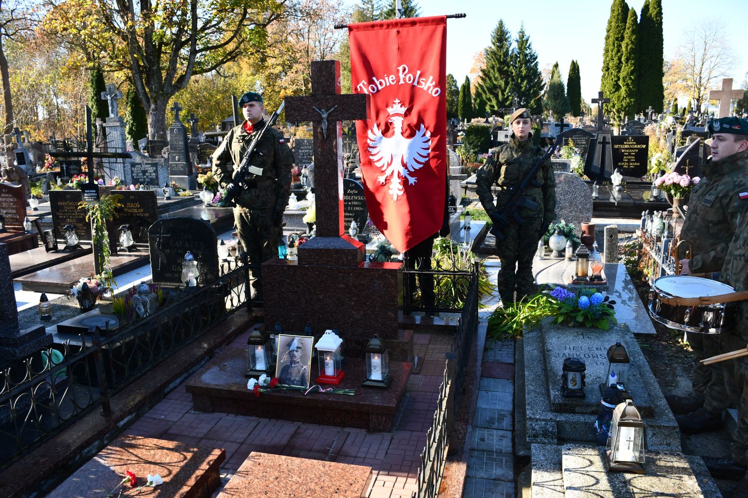 Oddziały Instytutu Pamięci Narodowej  w Białymstoku i w Katowicach zorganizowały we wtorek na cmentarzu parafialnym przy ul. Bakałarzewskiej w Suwałkach uroczystość oznaczenia znakiem pamięci „Tobie Polsko” grobów: śp. Władysława Kryszpina ps. „Kruk” oraz grób śp. Jana Skibickiego ps. „Kłos”.