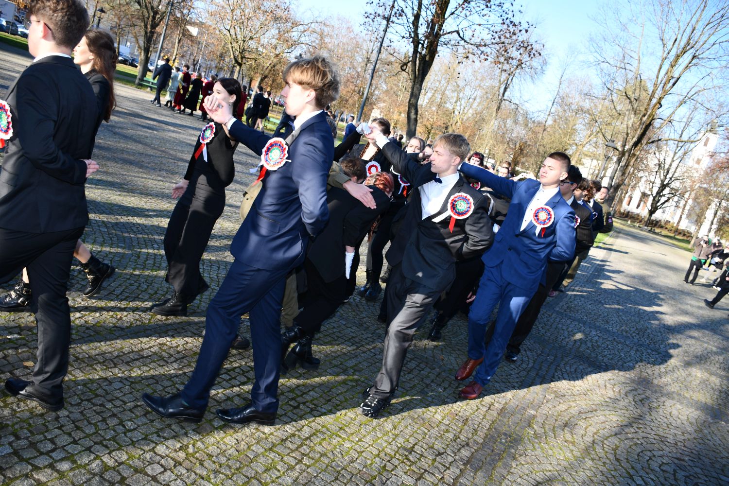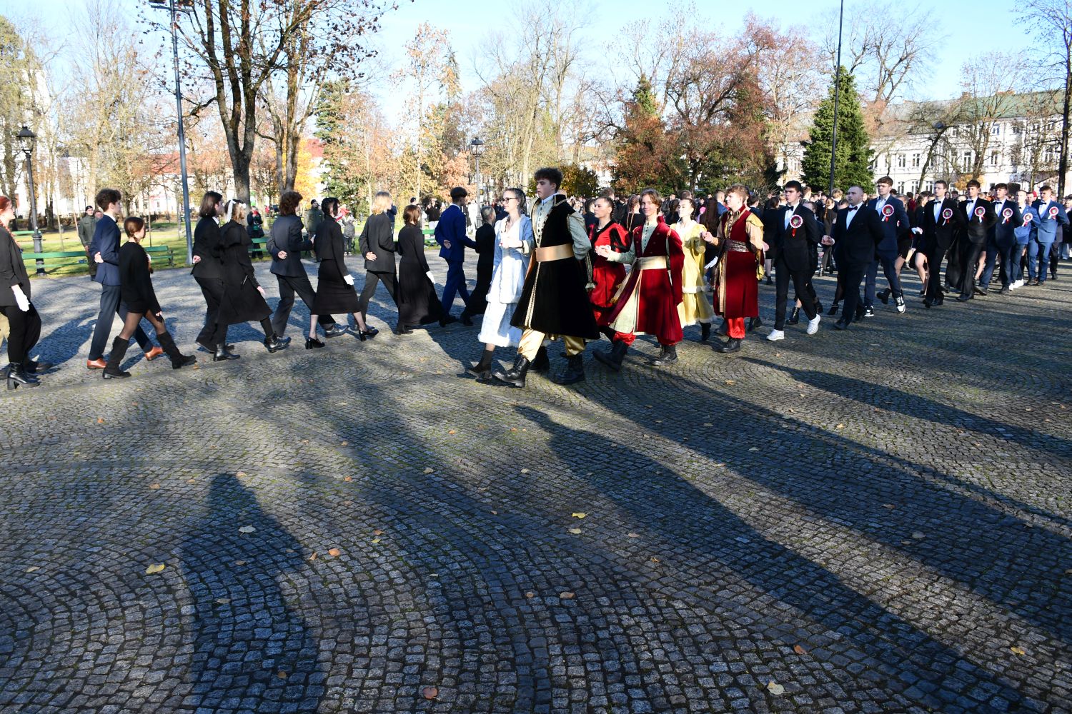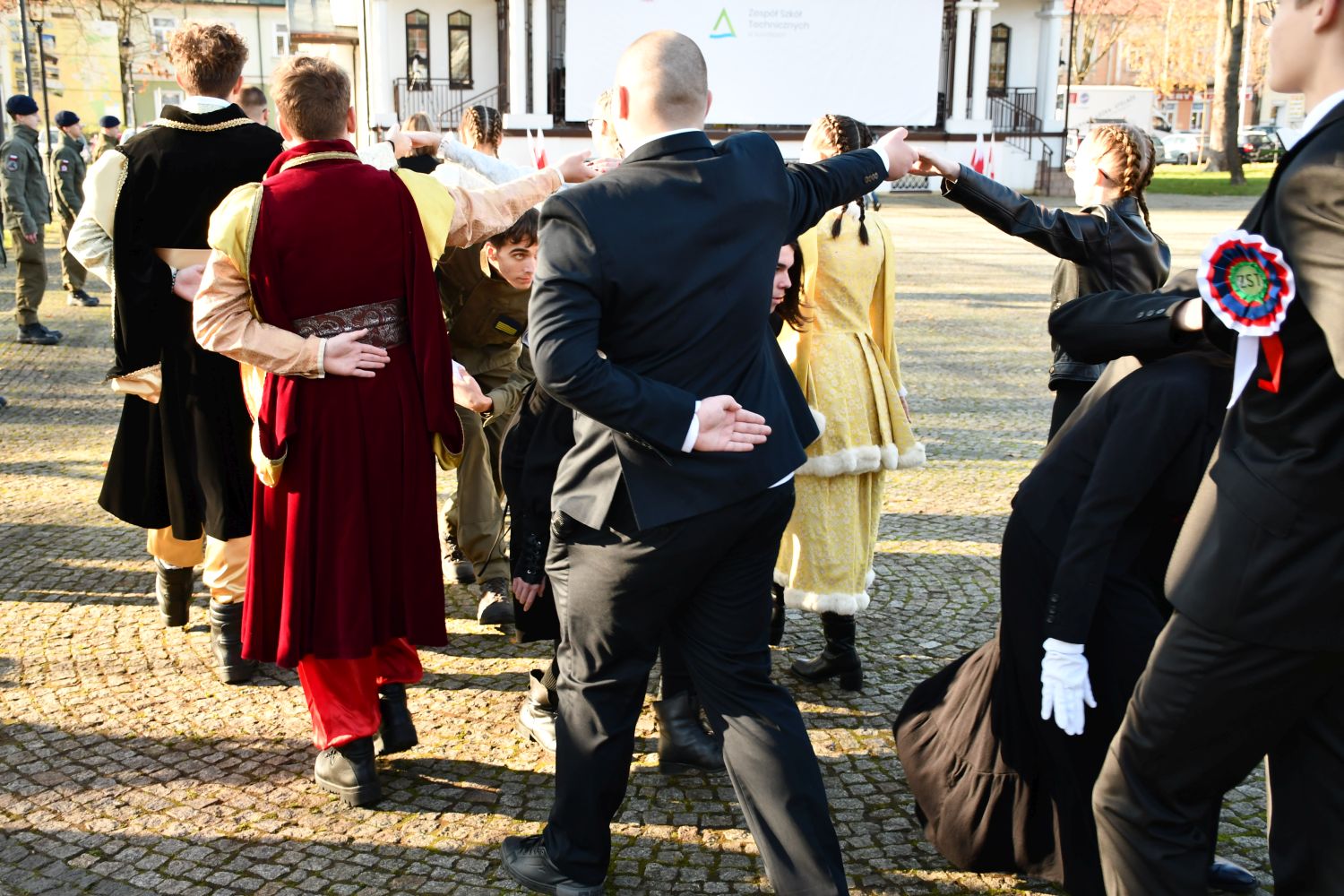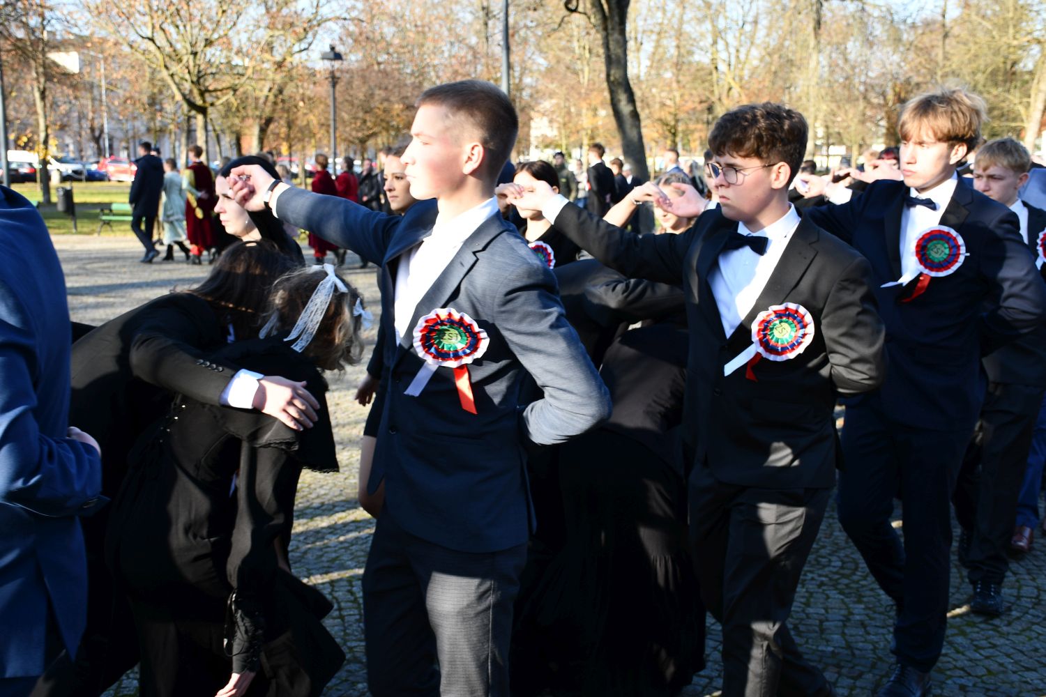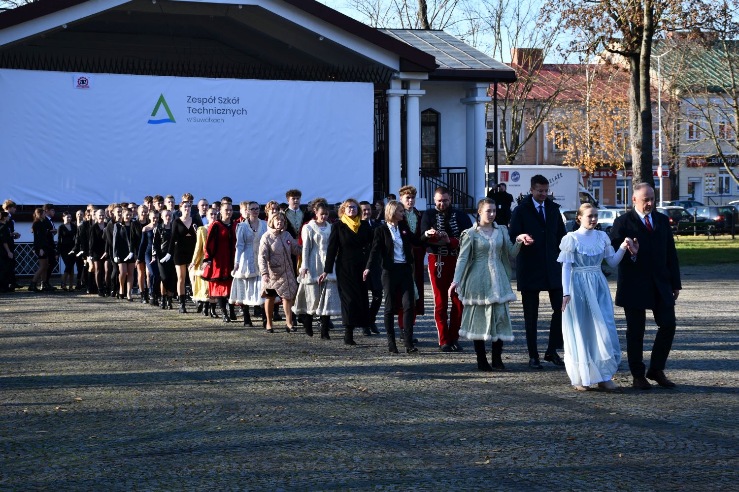 "Poloneza dla Niepodległej" zatańczyli w piątek (07.11) w Parku Konstytucji 3 Maja uczniowie Zespołu Szkół Technicznych w Suwałkach oraz zaproszeni goście.