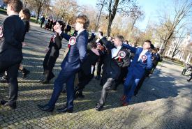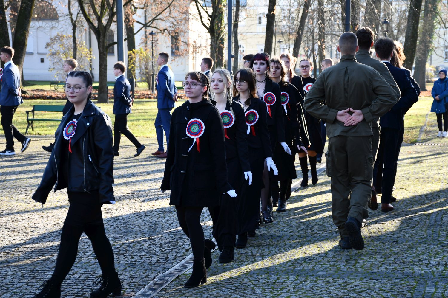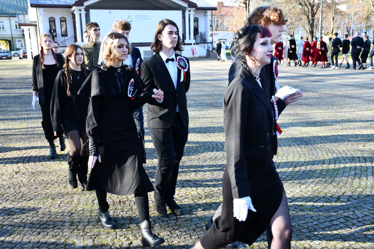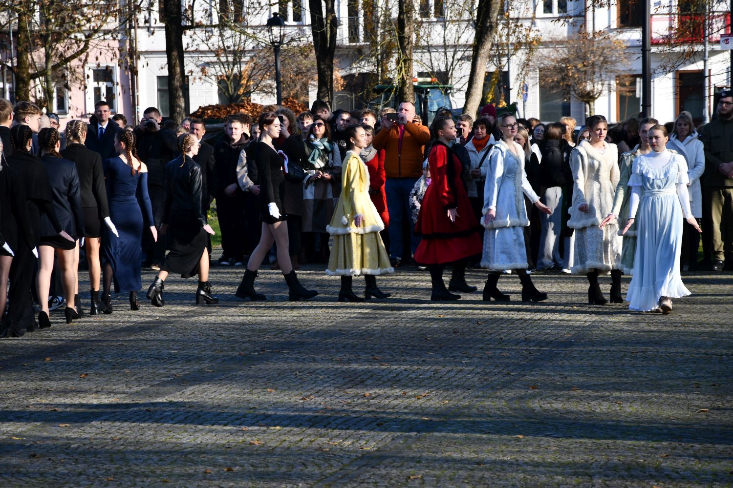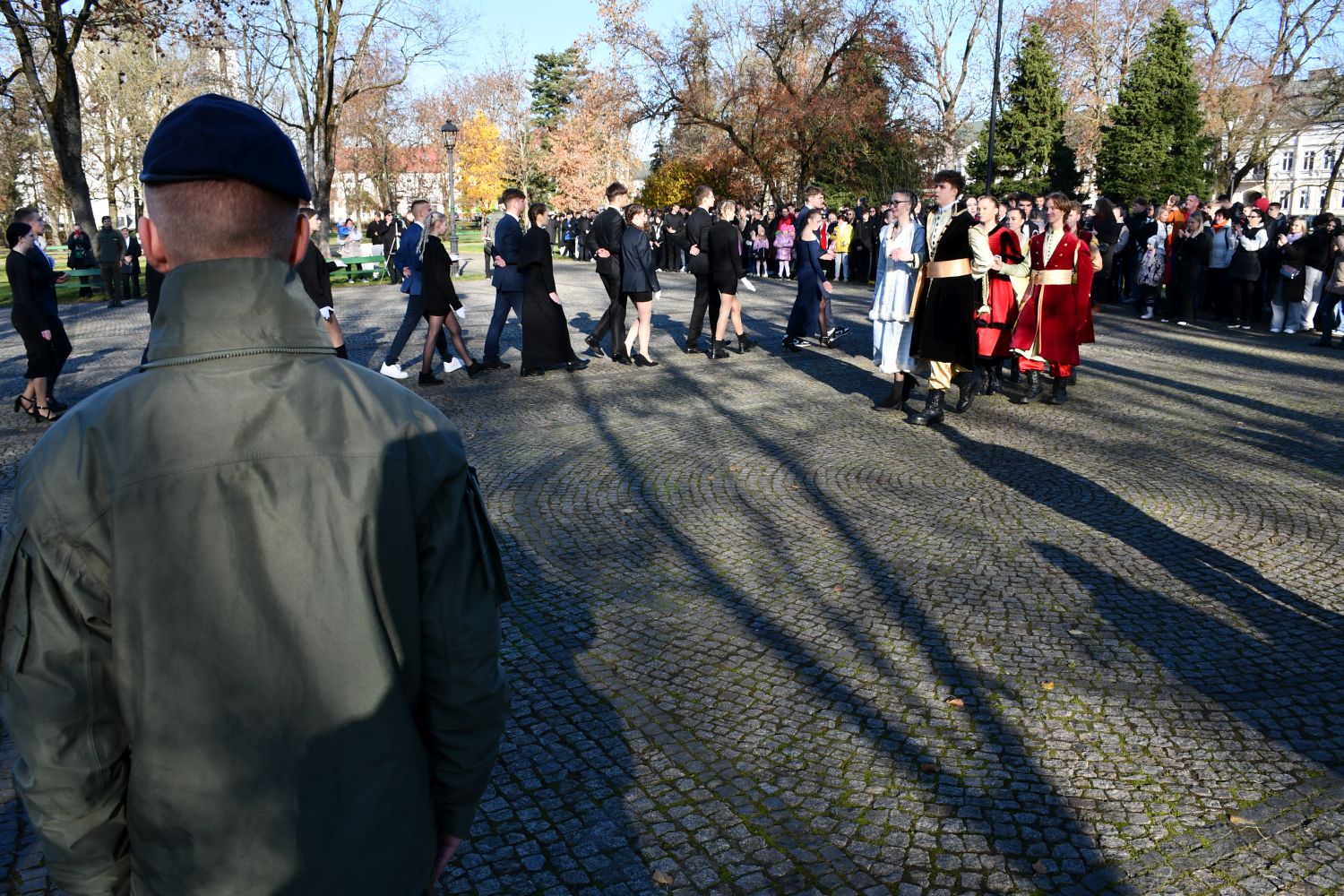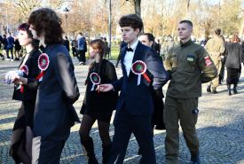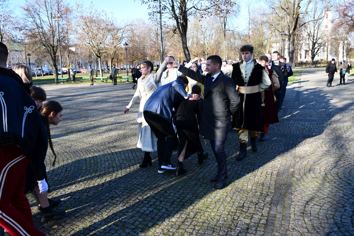 "Poloneza dla Niepodległej" zatańczyli w piątek (07.11) w Parku Konstytucji 3 Maja uczniowie Zespołu Szkół Technicznych w Suwałkach oraz zaproszeni goście.