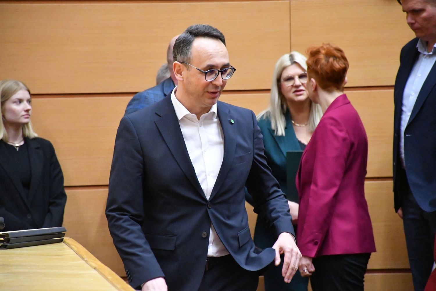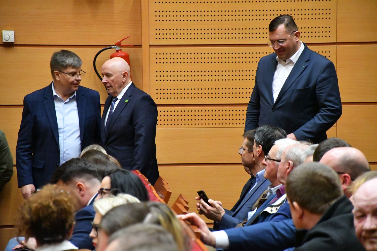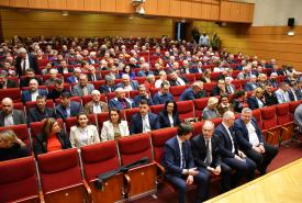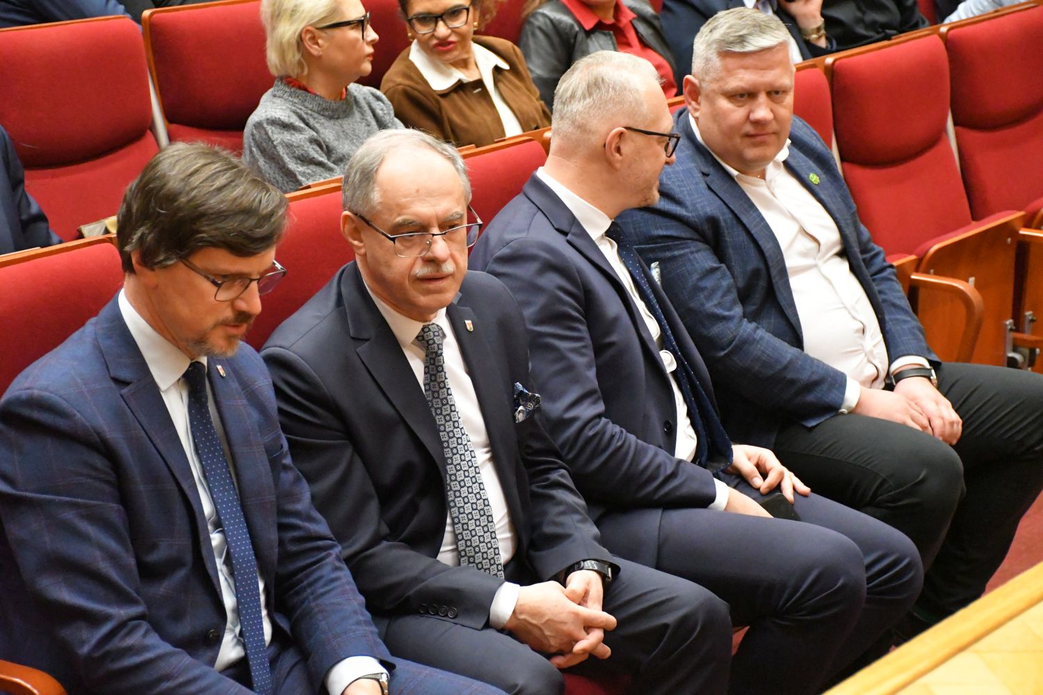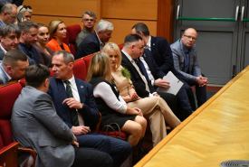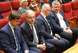 Dariusz Klimczak, Minister Infrastruktury, Stefan Krajewski, Minister Rolnictwa i Rozwoju Wsi oraz Paweł Bejda, Wiceminister Obrony Narodowej spotkali się w czwartek (19.03) z mieszkańcami Suwałk w auli Państwowej Uczelni Zawodowej.