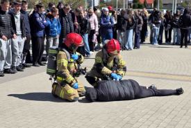 Integralnym punktem programu były zaplanowane i kontrolowane ćwiczenia służb w zakresie reagowania kryzysowego. W ramach przygotowanego scenariusza przeprowadzono pozorowaną ewakuację obiektu z udziałem służb odpowiedzialnych za bezpieczeństwo publiczne. Akcja przebiegła sprawnie i zgodnie z procedurami, a młodzież uczestnicząca w wydarzeniu mogła w praktyce zobaczyć, jak należy reagować w sytuacjach zagrożenia – od ewakuacji rannych, przez udzielanie pierwszej pomocy, po współpracę pomiędzy służbami i organizatorami wydarzeń masowych.