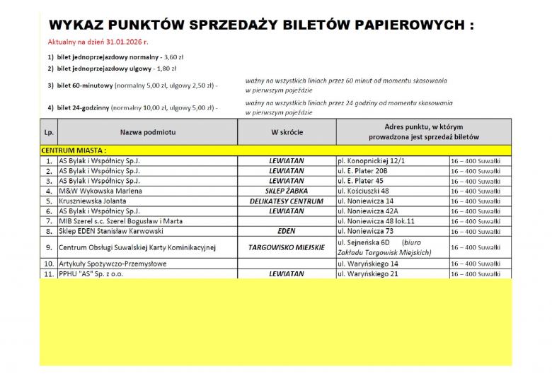 - W punktach handlowych w mieście: wykaz na poniższych zdjęciach