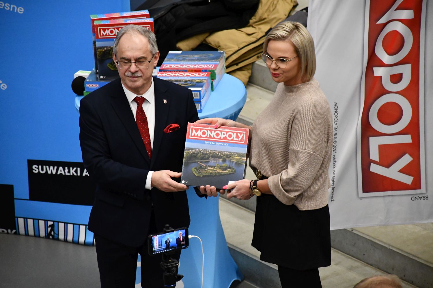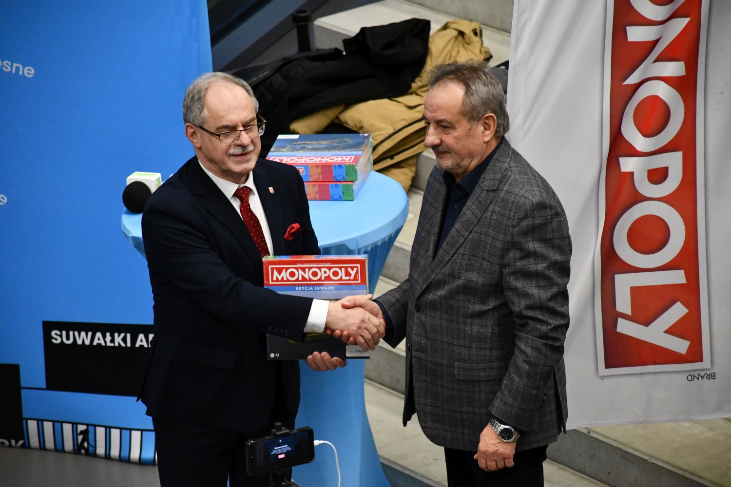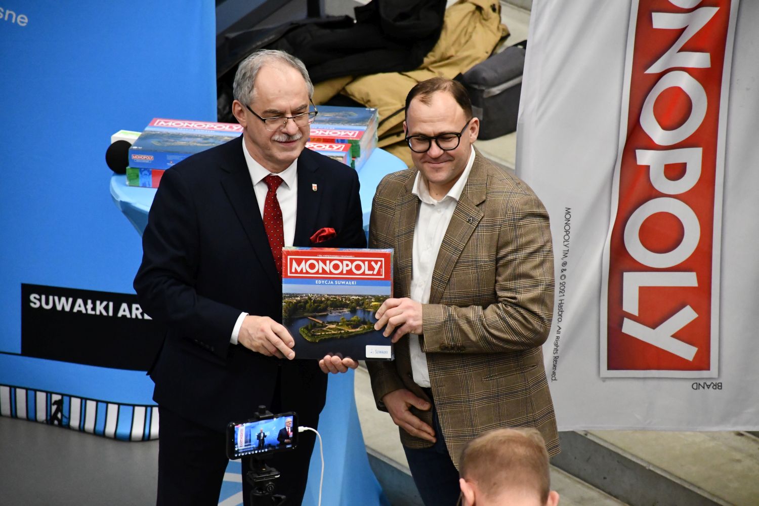 – Dziś suwalczanie odpowiedzieli na tę inicjatywę w bardzo fajny sposób, bo zainteresowali się grą Monopoly, która powstała dzięki inicjatywie jednego z mieszkańców. Bardzo się cieszę, że mamy takich ludzi — mieszkańców, którzy zastanawiają się, co zrobić, aby nasze miasto było ciekawsze, przyjemniejsze do życia oraz byśmy mogli wspólnie się bawić i grać. Przecież właśnie do tego służy ta gra. Chciałbym bardzo serdecznie podziękować również partnerom biznesowym. Całe przedsięwzięcie, jak na nasze warunki, jest sporym projektem, a bez ich wsparcia finansowego trudno byłoby sfinansować je wyłącznie z budżetu miasta. To nie znaczy, że budżet miejski jest słaby — jest dobry. Poradzilibyśmy sobie, ale w jedności siła. Razem możemy więcej — mówił prezydent.