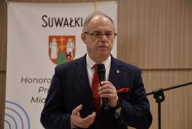 - Ten dzień ustanowiono po to, żeby zwrócić uwagę na osoby, które niosą pomoc drugiemu człowiekowi. I schodząc na grunt lokalny, na grunt naszego samorządu, trudno nam wyobrazić funkcjonowanie naszego miasta i tego co robimy, bez tego bezinteresownego udziału naszych mieszkańców - wolontariuszy. Udzielacie się państwo w różnych dyscyplinach, pomagacie nam w realizacji różnych wydarzeń i przedsięwzięć. Jesteście w szpitalu, w hospicjum, w DPS Kalina, na Air Show Odlotowe Suwałki, czy Suwałki Blues Festiwal. Jest też ekipa wolontariuszy sportowych i bez nich byłoby bardzo nam trudno zorganizować wydarzenia naprawdę dużej rangi sportowej, które mamy w naszym mieście. Dzisiaj jest dobry moment, żeby podziękować za tą postawę obywatelską, bo wolontariat towarzyszył człowiekowi od wielu, wielu lat. Jednak dzisiaj, w XXI wieku, kiedy nasza pozycja materialna jest coraz lepsza, wydawać by się mogło, że praktycznie sami powinniśmy sobie radzić, a tu okazuje się, że nie. Że są momenty, są chwile, są takie wydarzenia, gdzie ta pomoc jest niezbędna. I za taką postawę obywatelską, bardzo ludzką, serdecznie wam dzisiaj w imieniu suwalskiego samorządu dziękuję - powiedział Czesław Renkiewicz, prezydent Suwałk.