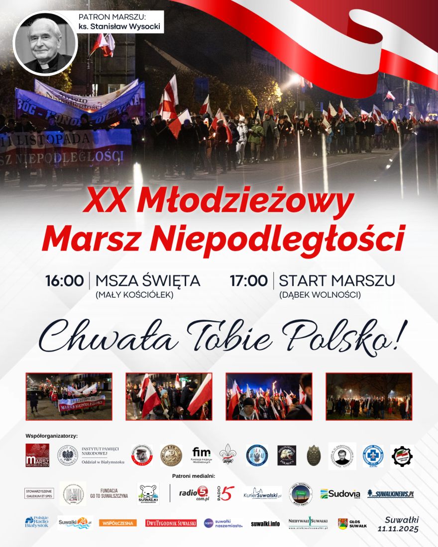 Już po raz dwudziesty w Suwałkach odbędzie się Młodzieżowy Marsz Niepodległości – wyjątkowe wydarzenie, które od lat gromadzi mieszkańców miasta i regionu wokół wspólnego świętowania Dnia Niepodległości.