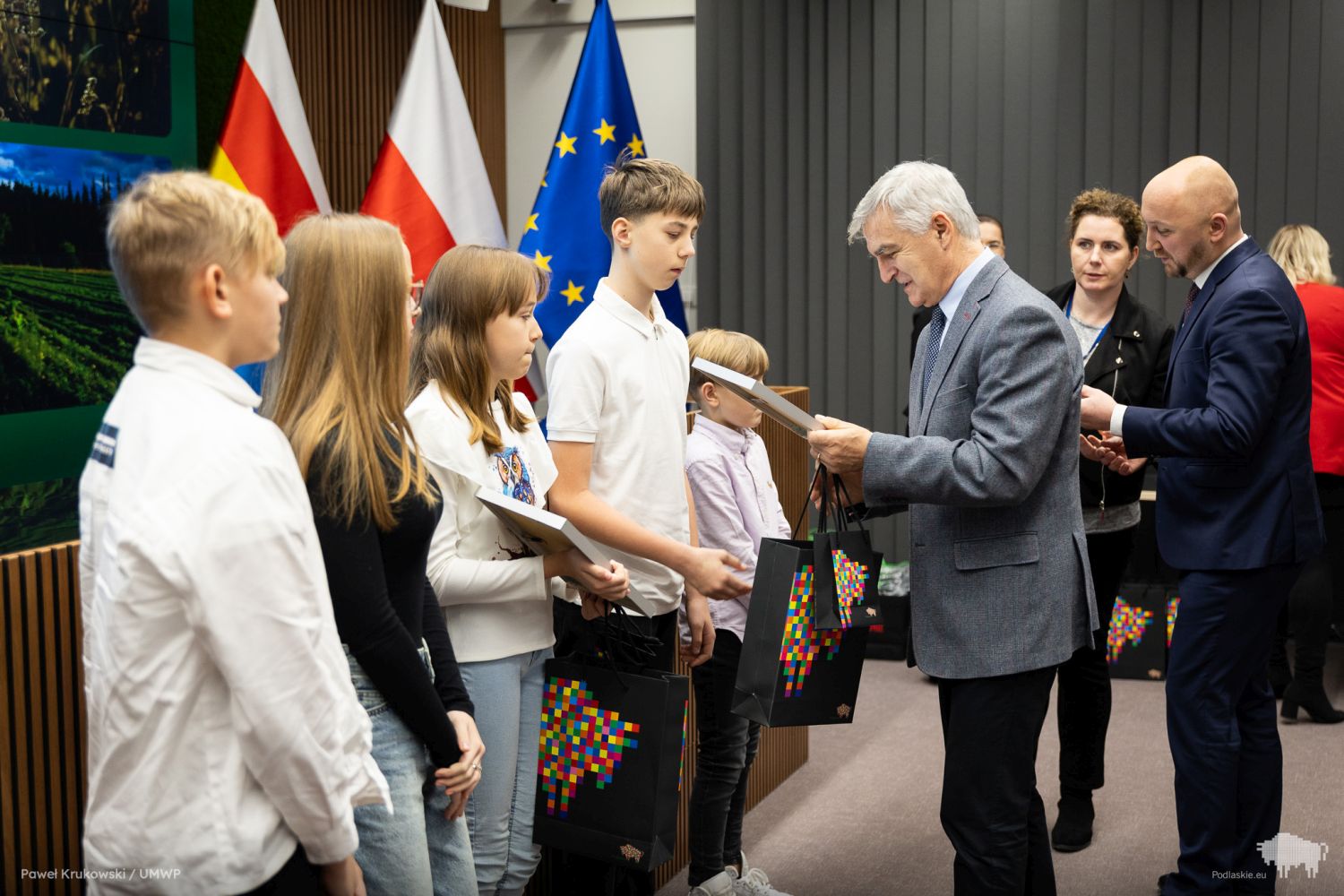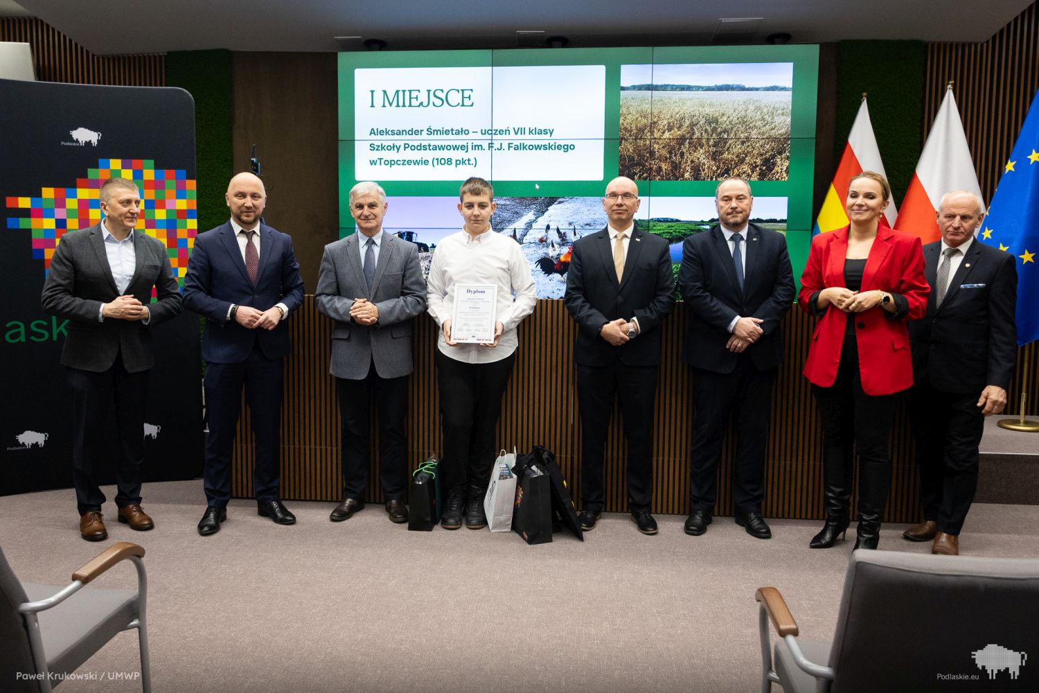 Wszystkich wyróżnionych poznaliśmy w piątek (28.11) podczas finałowej gali w Białymstoku. W wydarzeniu wzięli udział marszałek Łukasz Prokorym oraz członek zarządu Bogdan Dyjuk. Marszałek podkreślił, że mimo młodego wieku uczestnicy konkursu wykazują dużą otwartość na zdobywanie wiedzy o rolnictwie, zarówno w zakresie nowoczesnych technologii, jak i ekologicznych, przyjaznych środowisku rozwiązań. Podziękował także rodzicom i nauczycielom za to, że potrafią zaszczepić w młodych ludziach pasję oraz zainteresowanie tematyką rolniczą.