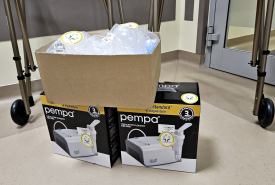 - Prawdopodobnie już od ponad 15 lat współpracujemy z Oddziałem Onkologii Klinicznej i Hematologii i przekazujemy w miarę naszych możliwości finansowych darowizny na ten oddział w ramach tej współpracy. Pielęgniarka oddziałowa wie jakie potrzeby są najpiękniejsze dla pacjentów więc pisze do nas list z potrzebami. Nie zawsze wszystkie prośby możemy spełnić, bo jesteśmy małym stowarzyszeniem i mamy pod opieką też podopiecznych indywidualnych, ale w ramach naszych możliwości finansowych jak możemy tak wspieramy. W tym roku kupiliśmy dwa balkoniki wspierające chodzenie pacjenta, dwa inhalatory, które są potrzebne akurat na ten moment, kubeczki do napojów i zupy oraz zrefundujemy żaluzje, wertikale w salach izolacji. Pieniądze pochodzą z darowizn, z 1,5% oraz z wpłat dla naszych podopiecznych, gdyż zachęcamy przyjaciół, sąsiadów i znajomych naszych podopiecznych, żeby swój podatek 1,5% przekazywali na konkretnego podopiecznego i my później możemy refundować koszty leczenia, konsultacji, dojazdu, zakup leków czy specjalistycznej diety - powiedziała Wiesława Giczewska, wiceprezes suwalskiego Stowarzyszenia Opieki Paliatywnej.