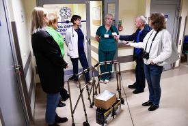 W rolę świętego Mikołaja wcielili się dziś członkowie Stowarzyszenia Opieki Paliatywnej w Suwałkach, którzy przygotowali prezent dla pacjentów Oddziału Onkologii Klinicznej i Hematologii w Szpitalu Wojewódzkim im. Ludwika Rydygiera w Suwałkach. Stowarzyszenie co roku w miarę możliwości stara się wspierać suwalski oddział. Pytają pracowników jakie w danym momencie są potrzeby i kupują to, co najbardziej się przyda. W tym roku to między innymi balkoniki wspierające chodzenie pacjenta oraz inhalatory.