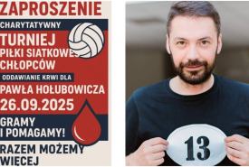W piątek 26. września o godzinie 9.00 w II Liceum Ogólnokształcącym rozpocznie się Charytatywny Turniej Piłki Siatkowej Chłopców oraz akcja honorowego oddawania krwi dla suwalczanina Pawła Hołubowicza, który wymaga regularnych transfuzji krwi.