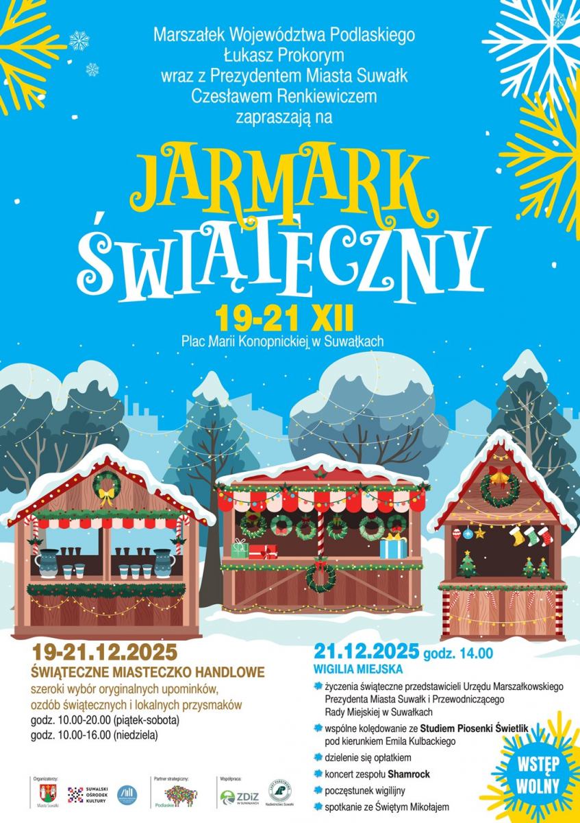Suwalski Ośrodek Kultury zaprasza na Jarmark Świąteczny, podczas którego będzie można poczuć prawdziwy klimat nadchodzących Świąt Bożego Narodzenia.