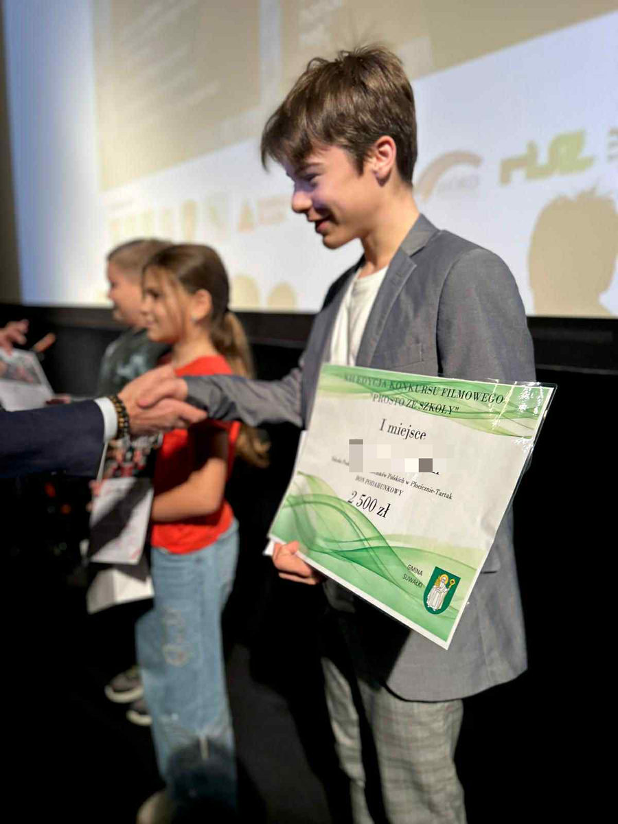 - I miejsce - Jakub Kisielewski SP Płociczno -Tartak, film pt. „Zatrzymaj się. Pomyśl. Wybierz dobrze”