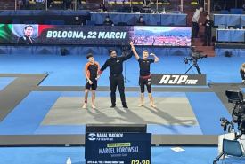 Pierwszego dnia zawodów rozegrano pojedynki w formule No Gi. Na matach zaprezentowało się trzech reprezentantów suwalskiego klubu. Świetny występ zanotował Marcel Borowski, który stoczył dwie walki z reprezentantami Izraela i obie zakończył przed czasem, sięgając po złoty medal.
