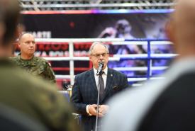 Przez kilka dni Suwałki staną się areną zmagań najlepszych wojskowych pięściarzy z całego kraju. Wszystko za sprawą Otwartych Mistrzostw Wojska Polskiego w boksie. Głównym organizatorem Mistrzostw jest 16 Pomorska Dywizja Zmechanizowana wraz ze Sztabem Generalnym Wojska Polskiego i 14 Suwalskim Pułkiem Przeciwpancernym. Wydarzenie ma na celu wyłonienie najlepszych żołnierzy-sportowców w boksie oraz inspirowanie do podnoszenia sprawności fizycznej w środowisku wojskowym. Dziś rano odbyło się uroczyste rozpoczęcie Mistrzostw, w których uczestniczył Prezydent Suwałk Czesław Renkiewicz.