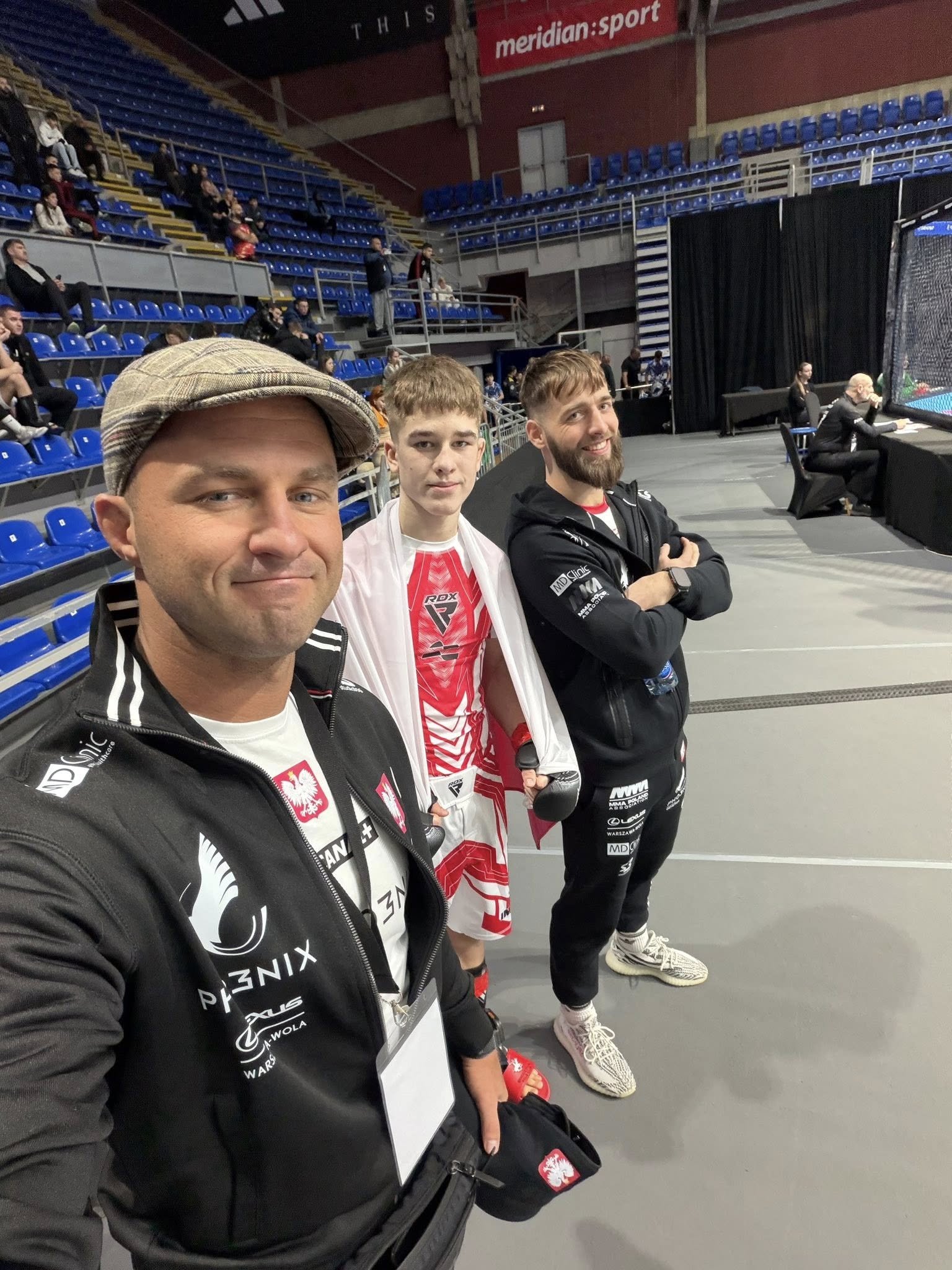 Bardzo dobrze zaprezentował się również Kornel Słabiński, który wygrał dwa pojedynki – balachą z reprezentantem Serbii oraz trójkątem nogami z zawodnikiem z Rumunii. W fazie grupowej uległ na punkty reprezentantowi Izraela, późniejszemu mistrzowi Europy, jako jedyny stawiając mu wyraźny opór na pełnym dystansie. Jego występ to solidny fundament pod kolejne starty i jasny sygnał, że suwalczanie mogą skutecznie rywalizować z europejską elitą.