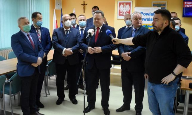 Konferencja prasowa dotycząca wyników naboru wniosków do Rządowego Funduszu Rozwoju Dróg 2022, odbyła się we wtorek (22.02) w starostwie powiatowym w Suwałkach.