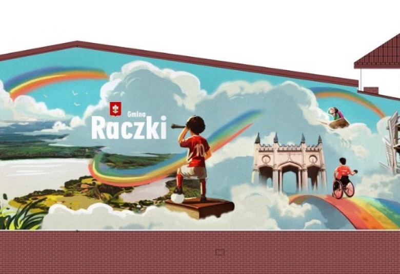 1. „Niewielkie Raczki, Wielkie Możliwości” Projekt o charakterze baśniowym i ilustracyjnym. Łączy piękno lokalnej przyrody z elementami edukacji. Przekazuje, że Raczki to idealne miejsce do rozwoju pasji bez barier. Głównym bohaterem jest uczeń przeżywający przygody w świecie marzeń. Na tle Doliny Rospudy pojawiają się kluczowe punkty regionu: punkt widokowy w Sidorach oraz Pałac Paca.