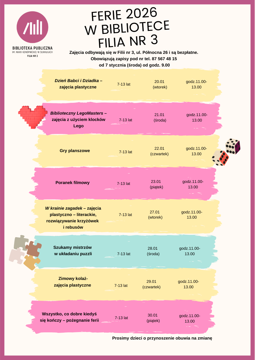 FERIE 2026 W BIBLIOTECE – FILIA NR 3