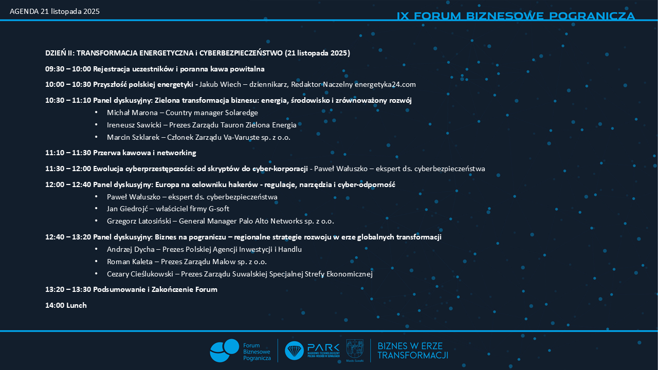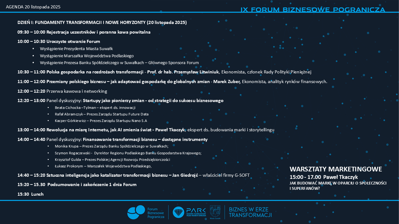 Przed nami dziewiąta edycja Forum Biznesowego Pogranicza, która odbędzie się 20–21 listopada w Parku Naukowo-Technologicznym Polska-Wschód. Tegoroczne wydarzenie, odbywające się pod hasłem „Biznes w erze transformacji”, poświęcone będzie najważniejszym wyzwaniom, z jakimi mierzą się współczesne przedsiębiorstwa.