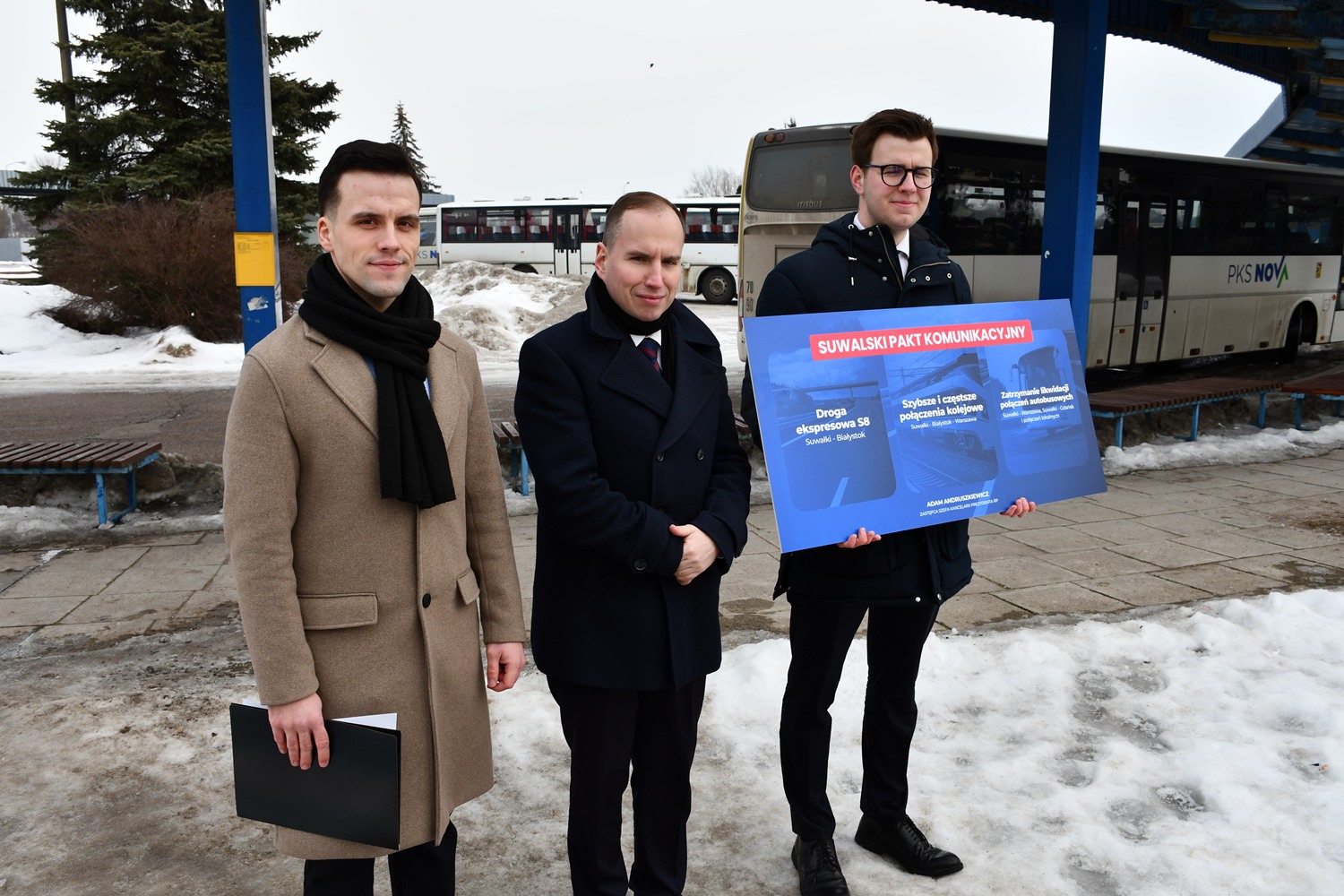 Problemy komunikacyjne Suwałk były tematem konferencji prasowej, która miała miejsce dziś przed suwalskim PKS. Z mediami spotkali się Adam Andruszkiewicz, wiceszef Kancelarii Prezydenta Rzeczypospolitej Polskiej, radny Miasta Suwałki Grzegorz Izbicki oraz działacz Kancelarii Prezydenta i przedstawiciel suwalskiej społeczności Piotr Wasilewski.