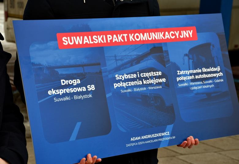 Budowa drogi ekspresowej S8 Suwałki–Białystok w standardzie 2+2, zwiększenie liczby i częstotliwości połączeń kolejowych oraz zahamowanie likwidacji połączeń autobusowych - to cele Suwalskiego Paktu Komunikacyjnego o którego powołaniu mówił w piątek (27.02) w Suwałkach Adam Andruszkiewicz, wiceszef Kancelarii Prezydenta RP.