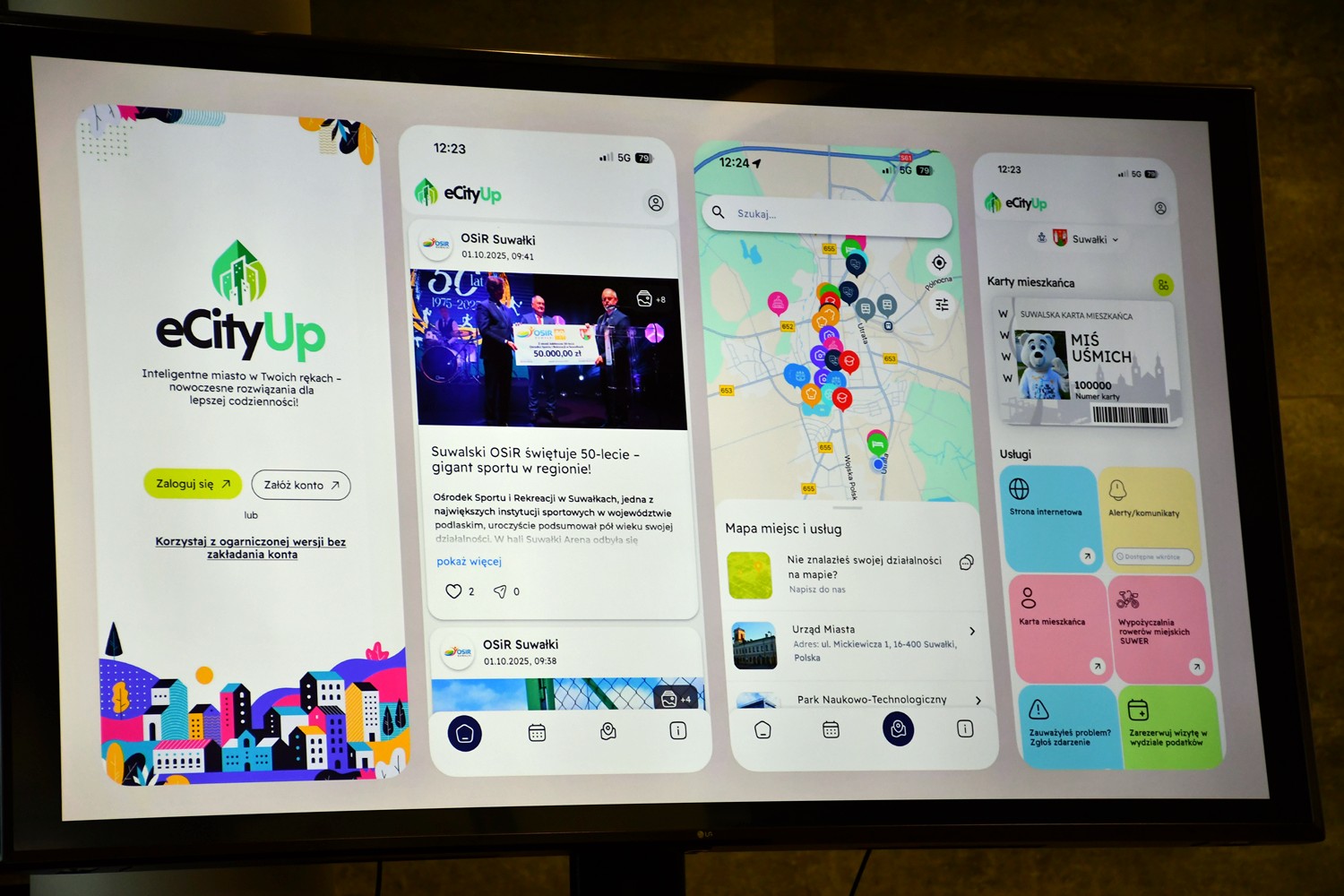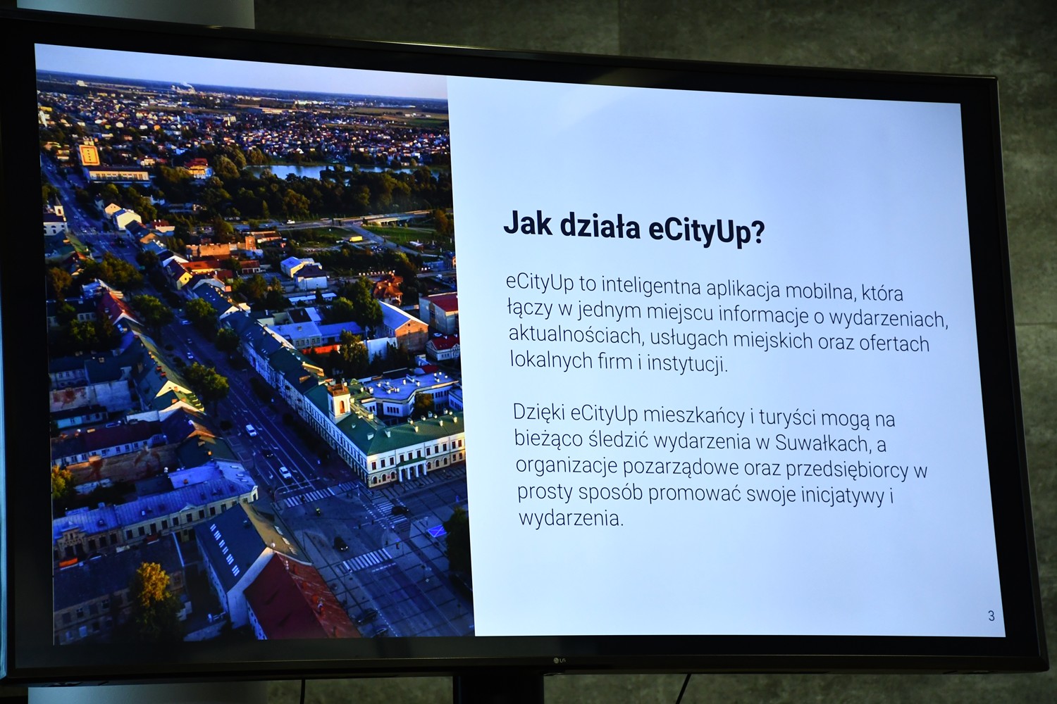W poniedziałek w Parku Naukowo-Technologicznym w Suwałkach podczas konferencji prasowej zaprezentowana została nowa miejska aplikacja mobilna dla mieszkańców Suwałk - eCityUp. Jej zadaniem jest zebranie wszystkich istotnych miejskich kwestii w jednym miejscu. Od umówienia wizyty w Urzędzie Miasta, poprzez wypożyczenie roweru miejskiego, harmonogram odbioru odpadów, komunikaty o awariach i utrudnieniach drogowych, po korzystanie z Suwalskiej Karty Mieszkańca i dostępnych zniżek, czy głosowanie w Suwalskim Budżecie Obywatelskim.