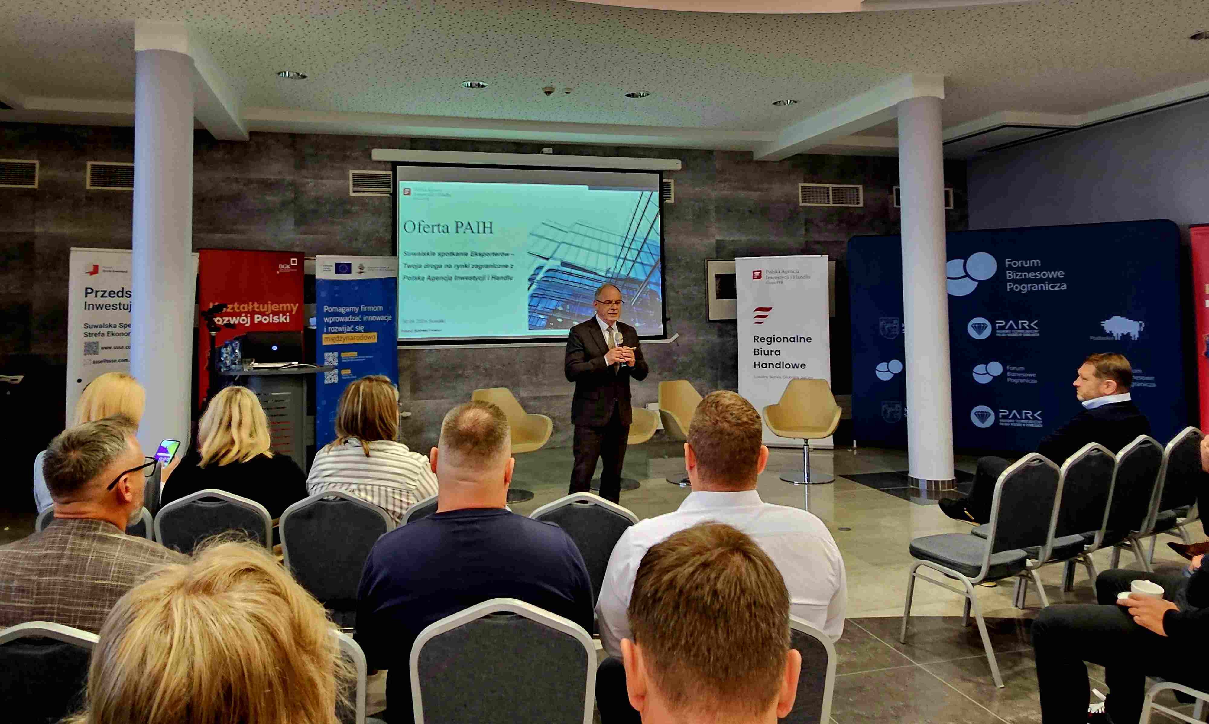 W Parku Naukowo-Technologicznym Polska-Wschód w Suwałkach odbyło się Suwalskie Spotkanie Eksporterów - Twoja droga na rynki zagraniczne. Wydarzenie, zorganizowane wspólnie z Polską Agencją Inwestycji i Handlu (PAIH), skierowane było do przedsiębiorców planujących lub prowadzących działalność eksportową.