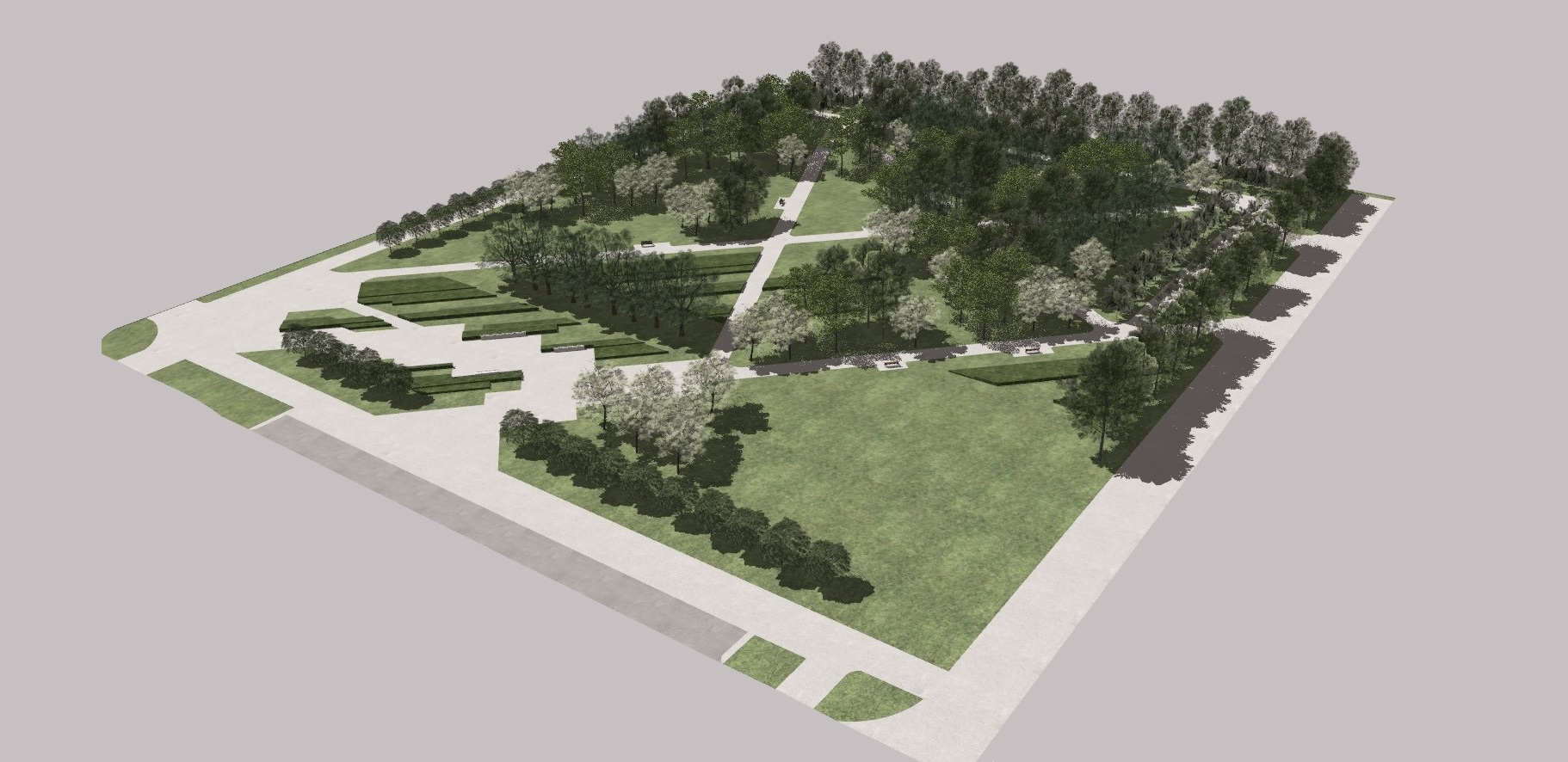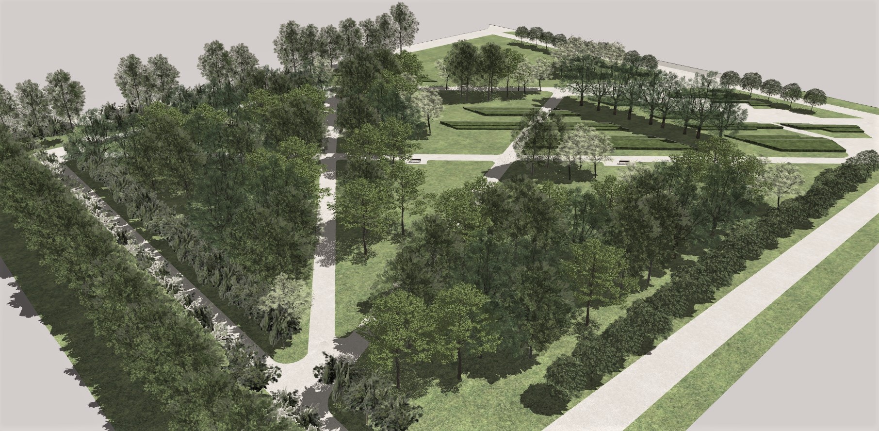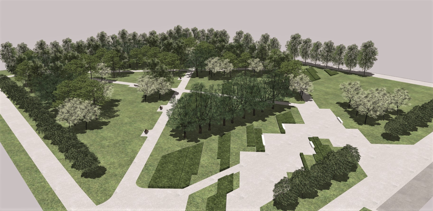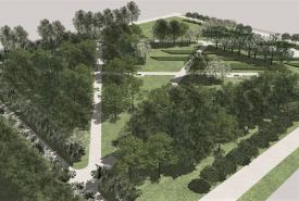 Park będzie nowoczesną przestrzenią rekreacyjną, z alejami, utwardzonymi miejscami z ławkami i stojakami rowerowymi, dużymi nasadzeniami oraz placem na wystawy plenerowe.