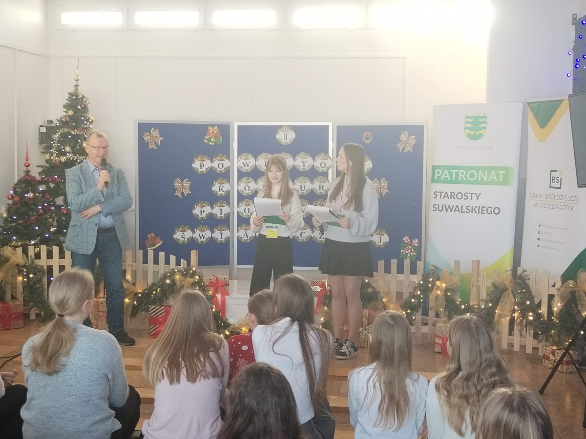 II Powiatowy Konkurs „Międzyszkolny Konkurs Piosenki Świątecznej” pod honorowym patronatem Starosty Suwalskiego odbył się w Szkole Podstawowej im. św. Jana Pawła II w Raczkach.