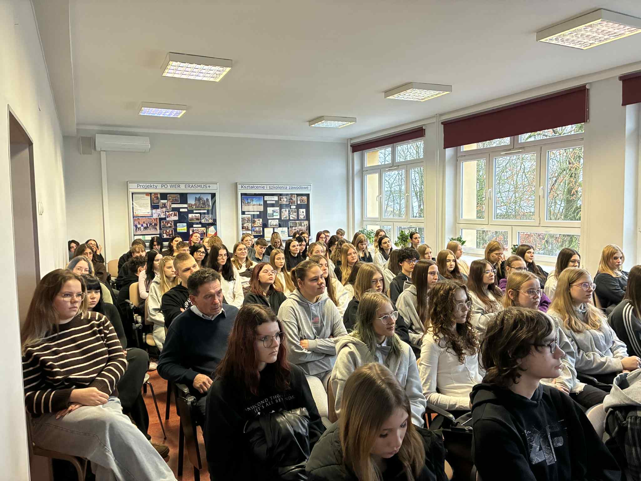 Wydarzenie poprowadził Paweł Żuk, prezes i trener UKS NAWA Suwałki, który z pasją i zaangażowaniem prowadzi rozmowy o sporcie, motywacji i wychowaniu młodych pokoleń. Spotkanie zakończyło się żywą dyskusją, licznymi pytaniami uczniów oraz serdecznymi podziękowaniami dla Gościa. Była to inspirująca lekcja nie tylko historii sportu, ale przede wszystkim wiary w siebie, odwagi i siły płynącej z aktywności fizycznej.