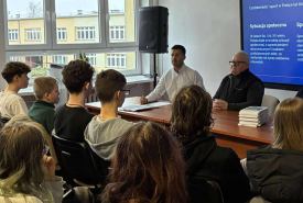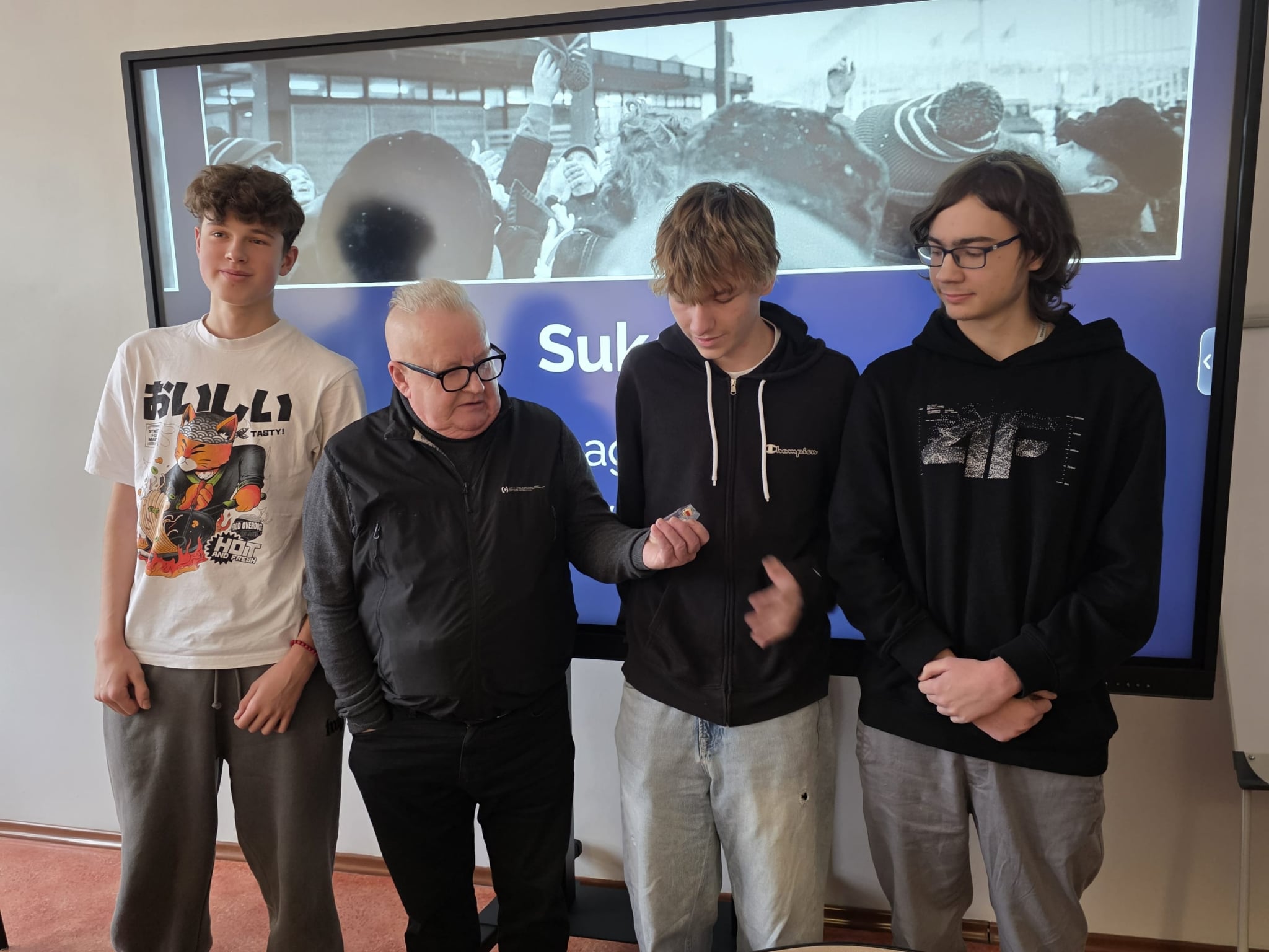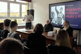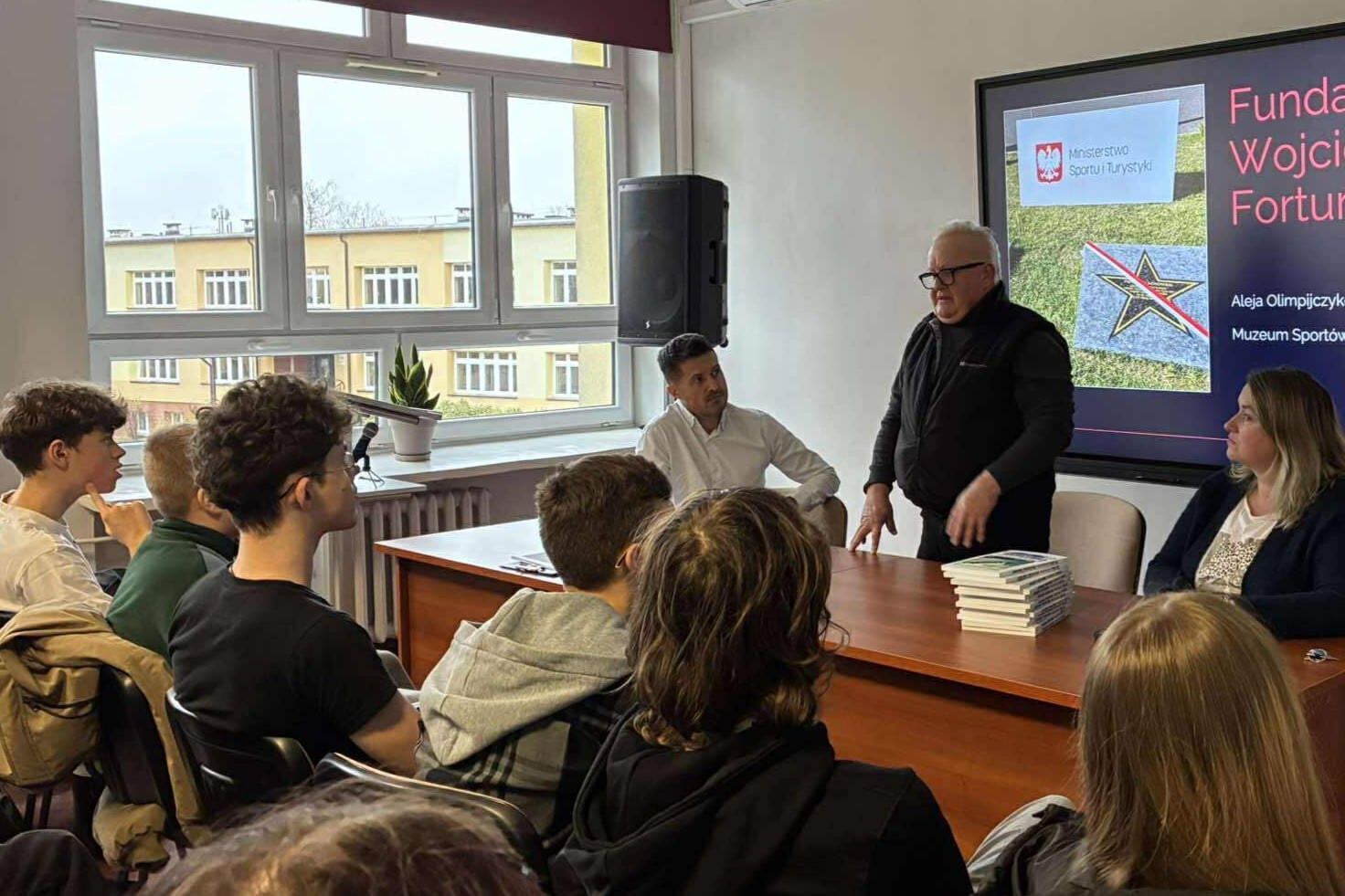 Jednym z najważniejszych wydarzeń projektu było wyjątkowe spotkanie z Wojciechem Fortuną – złotym medalistą XI Zimowych Igrzysk Olimpijskich w Sapporo i mistrzem świata w skokach narciarskich. To właśnie on 11 lutego 1972 roku zapisał się na kartach historii polskiego sportu, zdobywając pierwszy w historii zimowy złoty medal olimpijski dla naszego kraju. Podczas spotkania uczniowie z zapartym tchem słuchali opowieści o drodze młodego górala z Zakopanego na olimpijski szczyt. Były historie o pierwszych, amatorskich skoczniach budowanych z kolegami, o treningach na nartach biegowych, pierwszych porażkach na skoczni K-30 i o tym, jak niewiele brakowało, by mimo wygranych kwalifikacji nie poleciał do Sapporo. Nie zabrakło humoru, autentyczności i wzruszeń.