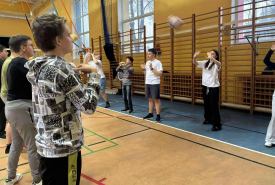 Projekt Step Up to nie tylko spotkania z mistrzami, ale przede wszystkim realne działanie. Uczniowie zorganizowali dwa spotkania sportowe dla dzieci i młodzieży ze Specjalnego Ośrodka Szkolno-Wychowawczego nr 1 w Suwałkach. W programie znalazły się wspólne rozgrzewki, ćwiczenia ogólnorozwojowe, gra w siatkówkę oraz zajęcia na nartach biegowych. Były to spotkania pełne ruchu, śmiechu, emocji i wzajemnej motywacji. Młodzież ze specjalnymi potrzebami edukacyjnymi mogła nie tylko aktywnie spędzić czas, ale też poczuć prawdziwą integrację i radość z bycia częścią sportowej społeczności. Inspiracją do tych zajęć stały się słowa Konfucjusza umieszczone na stronie SOSW nr 1: „Powiedz mi, a zapomnę; pokaż mi, a zapamiętam; zaangażuj mnie, a zrozumiem." I właśnie zaangażowanie stało się sercem całego projektu.
