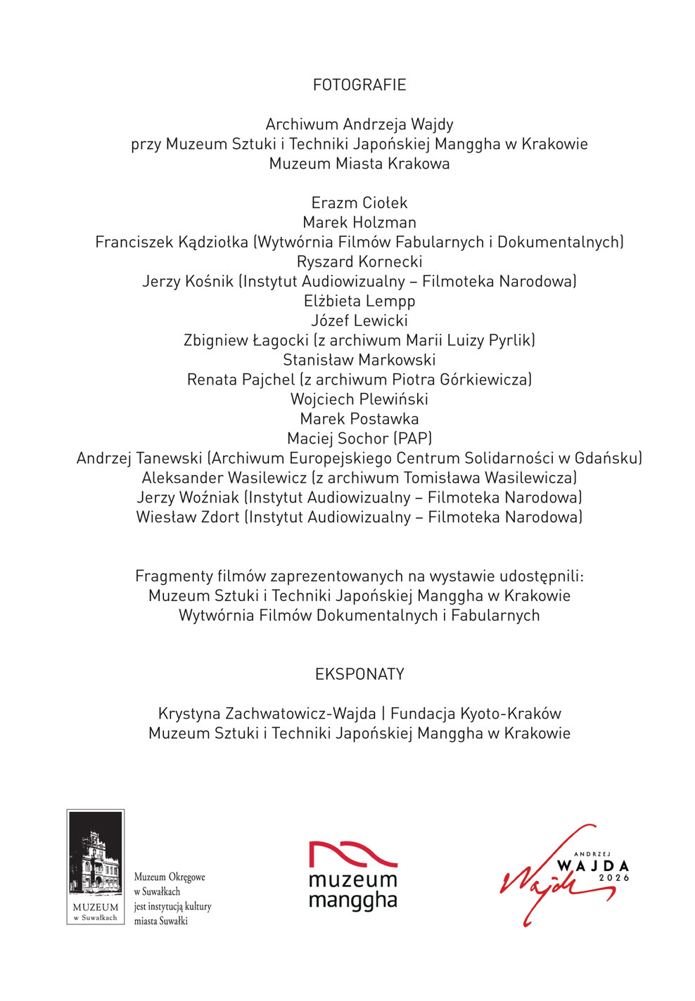 Jerzy Brzozowski, dyrektor Muzeum Okręgowego w Suwałkach oraz Katarzyna Nowak dyrektor Muzeum Sztuki i Techniki Japońskiej Manggha w Krakowie zapraszają na otwarcie wystawy "To wszystko da się zrealizować Krystyna Zachwatowicz-Wajda | Andrzej Wajda".