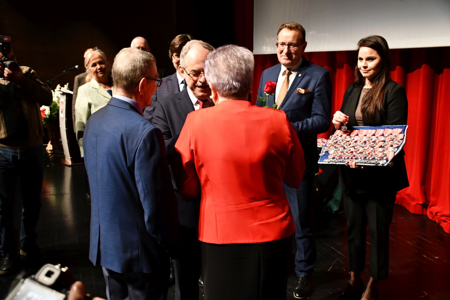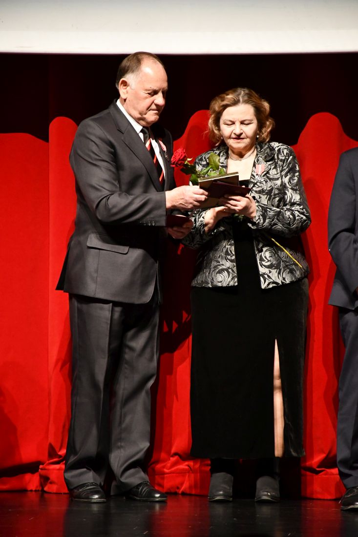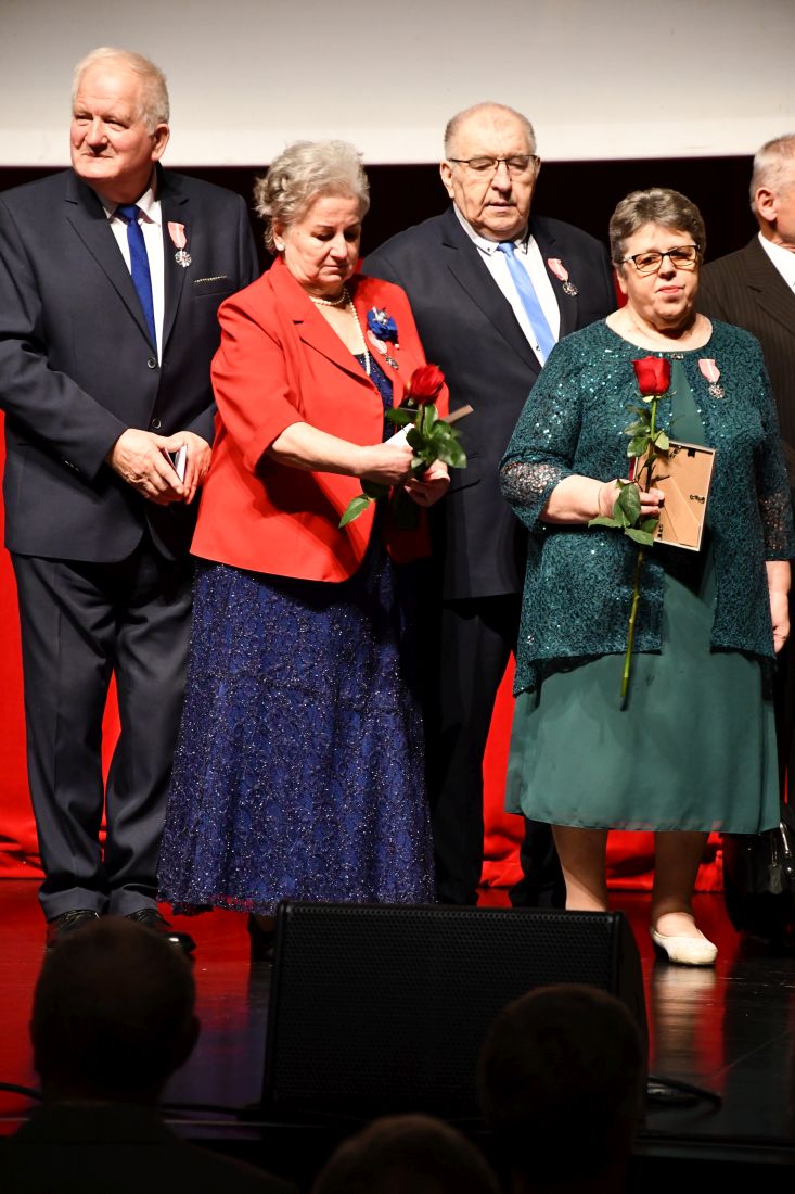 - Mamy dziś do czynienia z dużym wydarzeniem, ponieważ wiele par zostanie dziś odznaczonych wyjątkowym medalem za długoletnie pożycie małżeńskie. Zebrała się spora grupa mieszkańców naszego miasta — ponad 70 par stanie dziś tutaj, na scenie w Suwalskim Ośrodku Kultury, aby odebrać to wyróżnienie. To dla nas wielka radość, zwłaszcza że często mówi się o kryzysie małżeństw, który rzeczywiście jest widoczny w naszym społeczeństwie. Tymczasem w starszym pokoleniu widać, że ci małżonkowie trwają razem i mają się dobrze. To powód do dumy, do składania gratulacji. Dziękujemy za ich wspólne pożycie i za to, co przez te długie lata wnosili w życie naszego miasta. Życzymy im również kolejnych lat zgodnego małżeństwa, a przede wszystkim zdrowia — bo ono jest potrzebne, aby doczekać takiego jubileuszu - powiedział Czesław Renkiewicz, prezydent Suwałk.