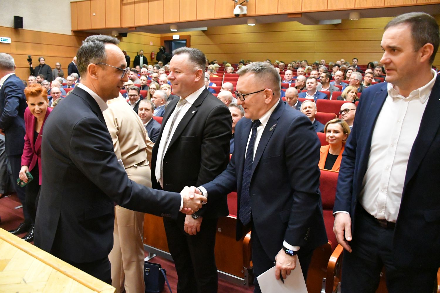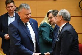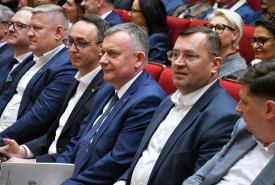Dariusz Klimczak, Minister Infrastruktury, Stefan Krajewski, Minister Rolnictwa i Rozwoju Wsi oraz Paweł Bejda, Wiceminister Obrony Narodowej spotkali się w czwartek (19.03) z mieszkańcami Suwałk w auli Państwowej Uczelni Zawodowej.