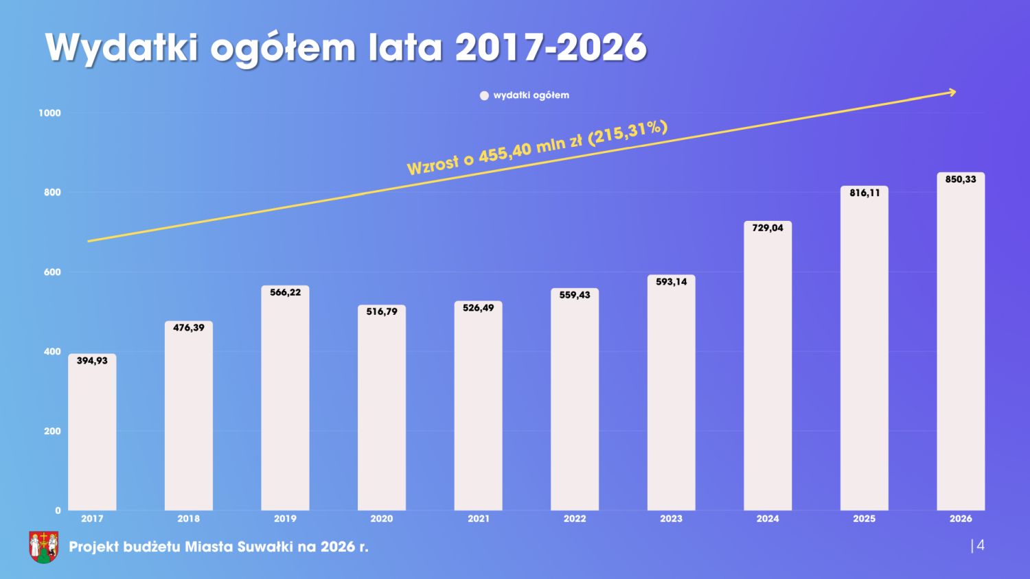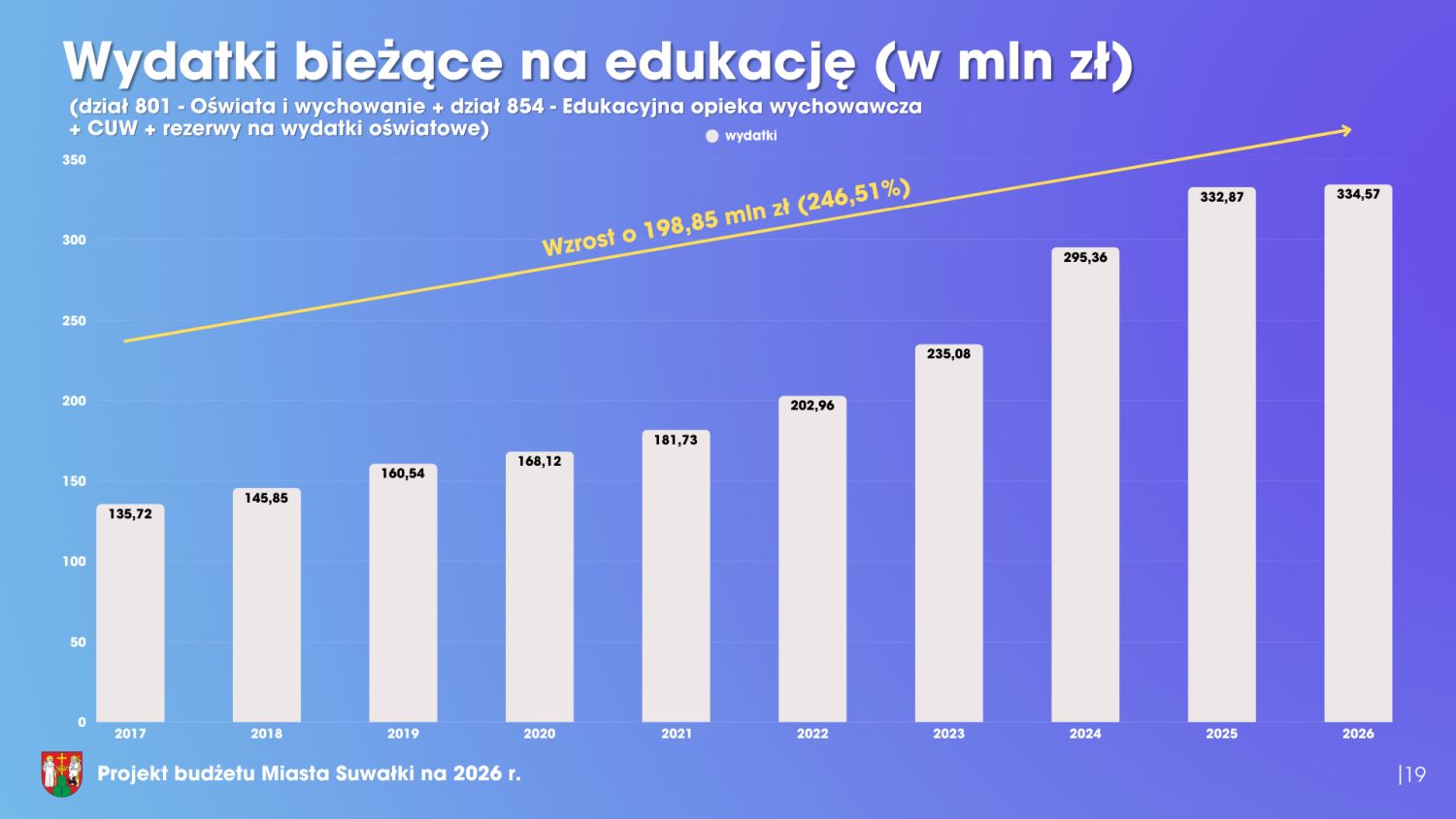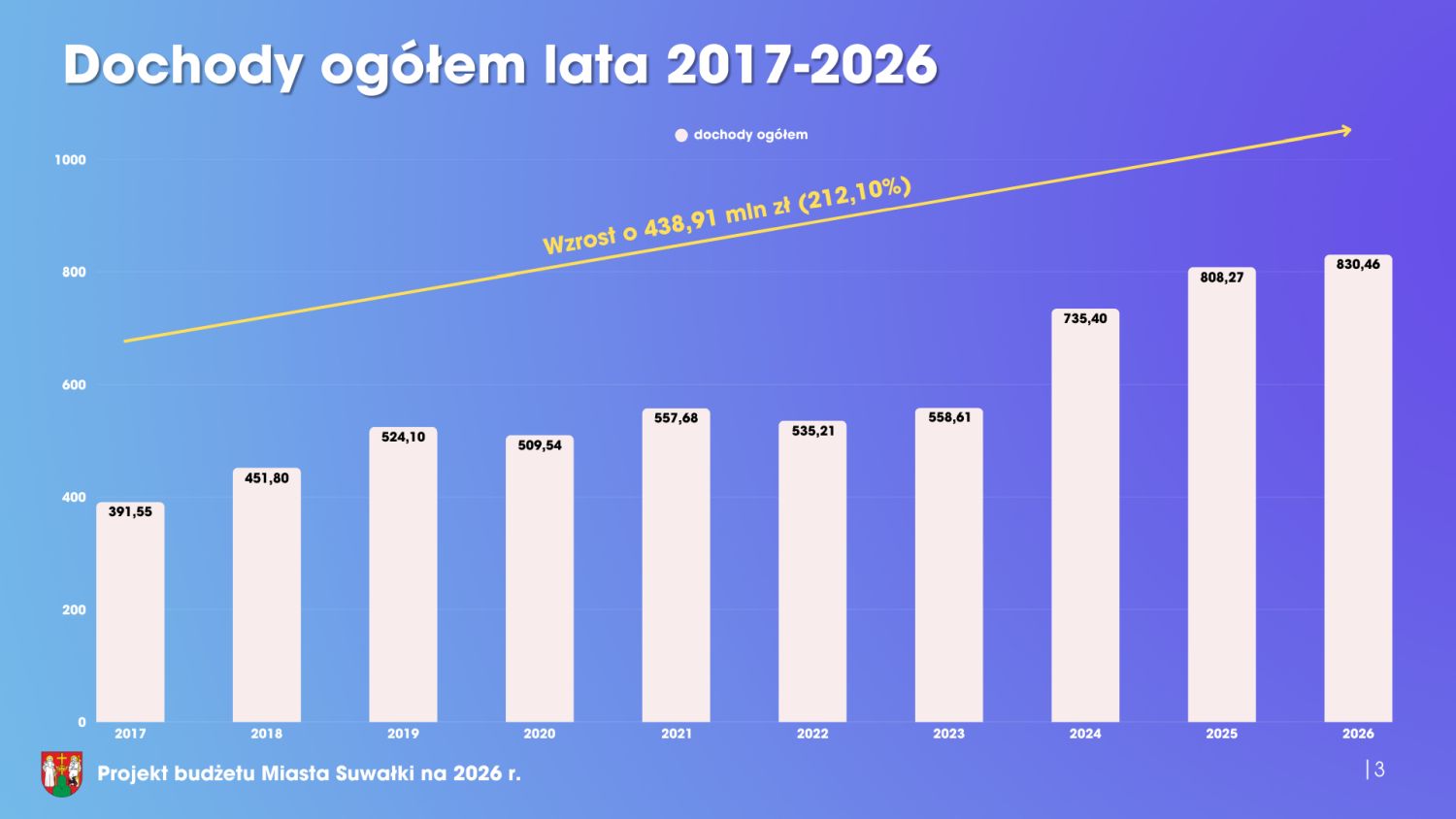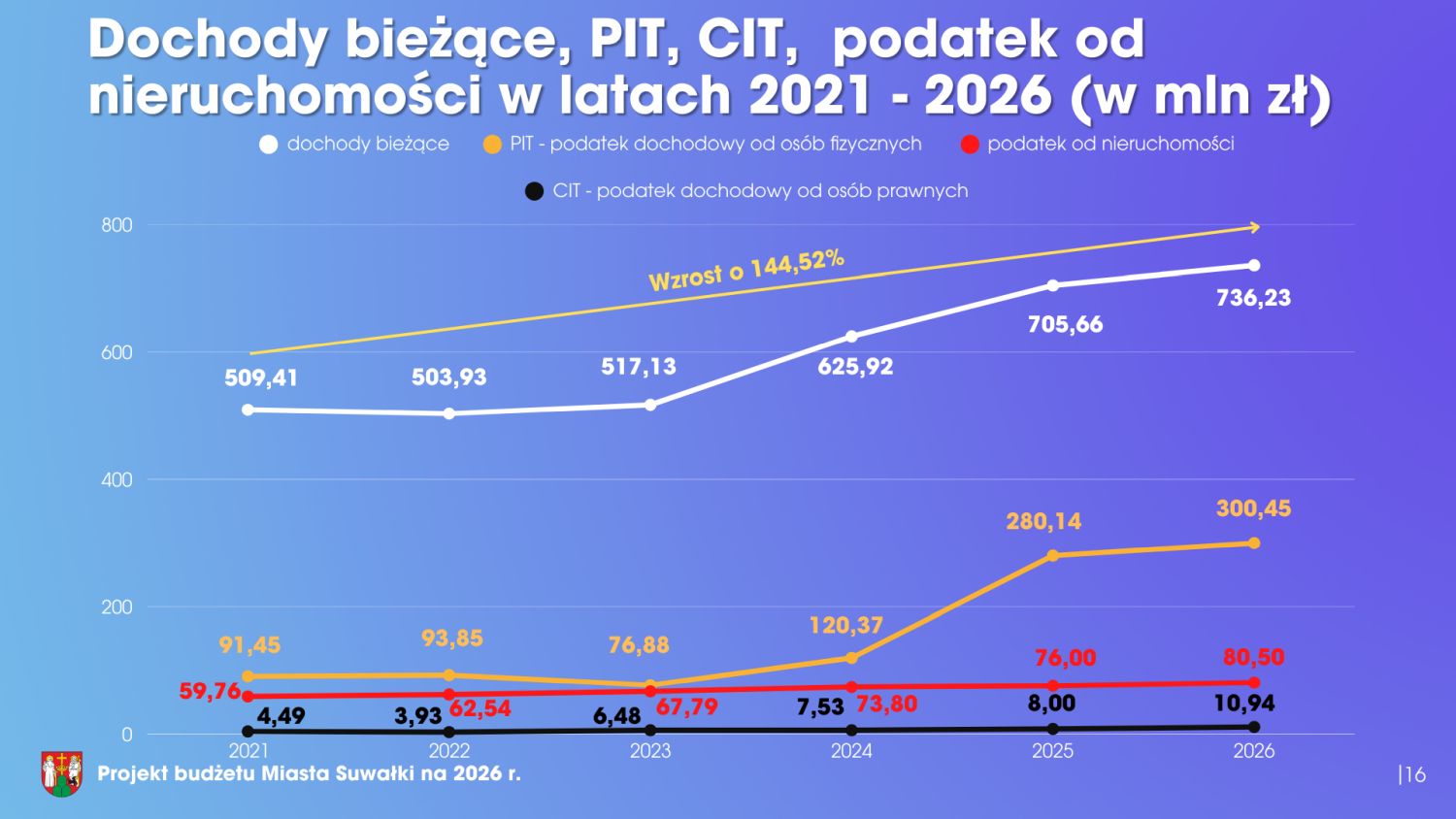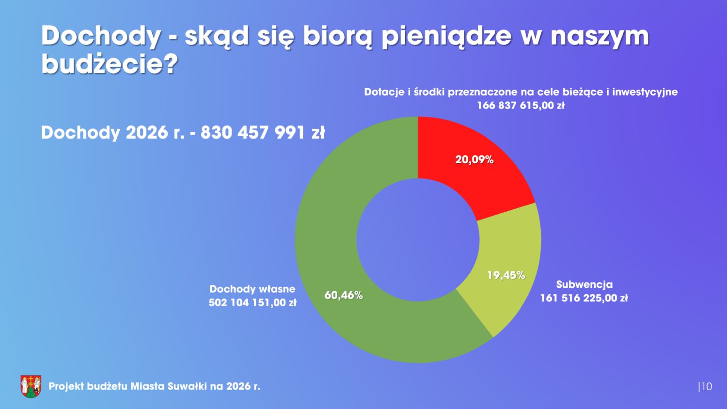 - Budżet miasta na 2026 rok jest budżetem rekordowym. Podkreślmy to wyraźnie – rekordowym. Dochody miasta przekraczają 830 milionów złotych. To są fakty. Wydatki natomiast wyniosą 850 milionów złotych. Co szczególnie istotne, dochody bieżące są wyższe od wydatków bieżących o ponad 55,5 miliona złotych, co stanowi solidny fundament stabilności finansowej miasta. Należy również podkreślić, że planowany deficyt zostanie w całości pokryty wypracowanymi wolnymi środkami, bez konieczności zaciągania kredytów, co potwierdza odpowiedzialne i długofalowe zarządzanie finansami miasta Suwałki.