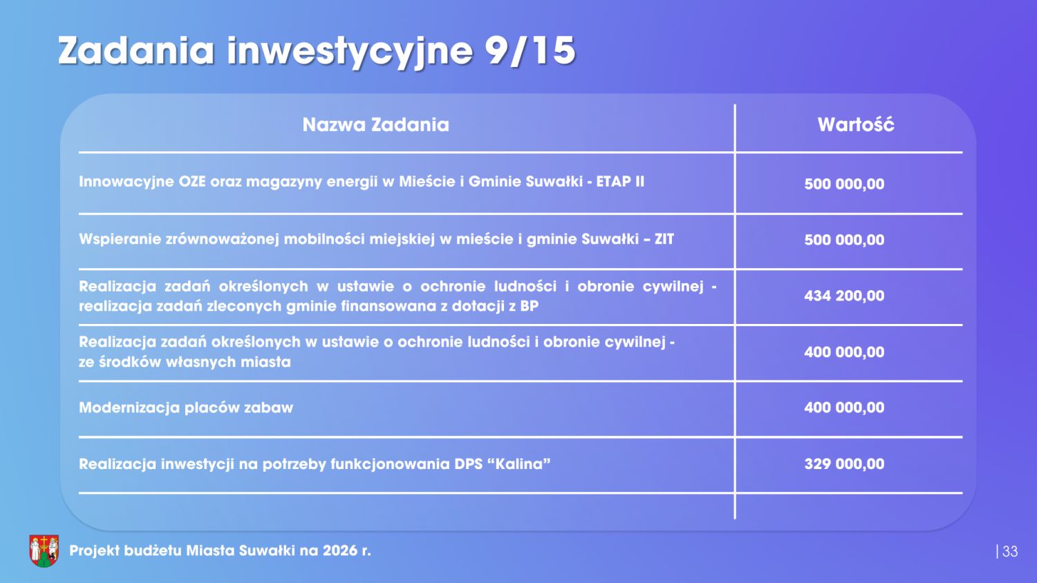 W kolejnym roku Suwałki mogą liczyć na dodatkowe środki w wysokości ponad 4,5 miliona złotych. Przypomnę również, że w skali kraju rząd zabezpieczył ponad 34 miliardy złotych na realizację programu ochrony ludności i obrony cywilnej w 2027 roku, a zapowiadana jest jego dalsza kontynuacja. Podsumowując, również w sposób refleksyjny: czy ten projekt budżetu jest idealny? Z pewnością nie. Zawsze chcielibyśmy, aby środków było więcej, a deficyt – mniejszy. Pozwolę sobie jednak stwierdzić, że ten budżet odpowiada na najważniejsze potrzeby mieszkańców. Jesteśmy miastem średniej wielkości, byłym miastem wojewódzkim, funkcjonującym w określonym położeniu geograficznym, a także w konkretnej sytuacji geopolitycznej i ekonomicznej. Koalicja Obywatelska również poprze projekt tego budżetu i będzie głosowała za jego przyjęciem.