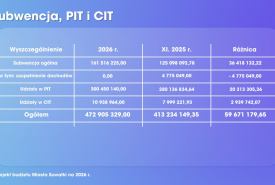 Jakie założenia zostały przyjęte? Między innymi założyliśmy, że ceny energii, w tym energii elektrycznej, pozostaną na poziomie roku 2025. Czy to się sprawdzi, pokaże czas. Wiemy, że nasze przedsiębiorstwo energetyki cieplnej wygrało przetarg na dostawę i sprzedaż energii elektrycznej dla naszego miasta oraz całej grupy zakupowej. Nadal jednak istnieją koszty przesyłu i dystrybucji, ponieważ na całkowitą cenę energii składa się nie tylko sama energia, ale również opłaty dodatkowe. Cenę energii cieplnej przyjęliśmy z uwzględnieniem 5-procentowej obniżki w stosunku do cen obowiązujących w bieżącym roku. Nie mamy jednak pewności, czy to założenie w pełni się zrealizuje. Zużycie ciepła w dużej mierze zależy od warunków pogodowych, a te z roku na rok są coraz łagodniejsze – mamy coraz mniej dni z ujemnymi temperaturami, co świadczy o ocieplaniu się klimatu. Ceny opłat za wodę i kanalizację również pozostają na poziomie roku 2025. Obowiązuje zatwierdzona taryfa, która będzie miała zastosowanie w przyszłym roku. Przyjęliśmy także podwyżki dla naszych pracowników – obowiązujące od 1 stycznia. Część tych podwyżek została ujęta bezpośrednio w budżetach jednostek organizacyjnych, natomiast środki na podwyżki planowane w drugim półroczu zostały zabezpieczone w rezerwie - mówił podczas prezentacji Czesław Renkiewicz, prezydent Suwałk.